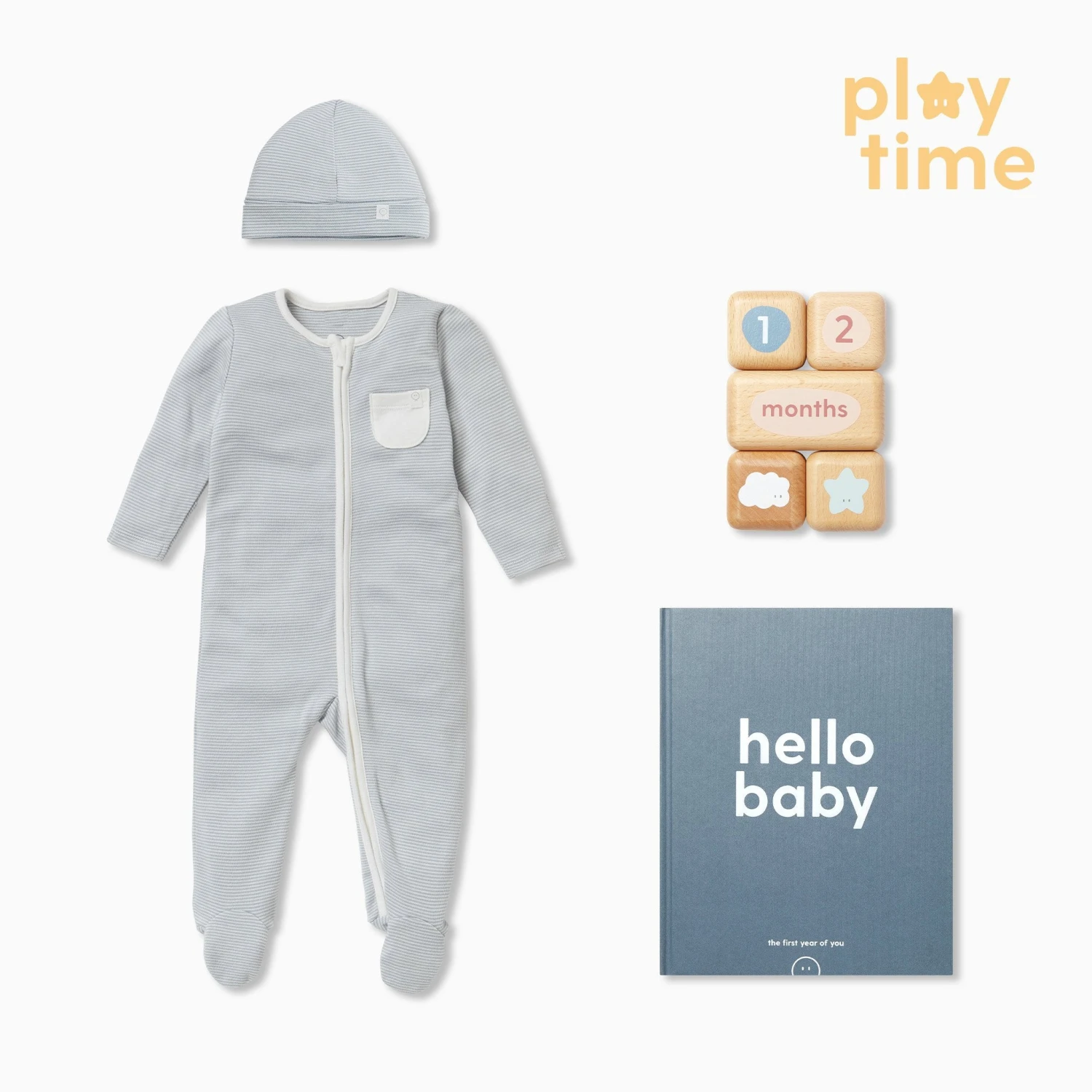 Our Baby Milestone & Clever Zip Baby Pajamas Gift Set makes a perfect gift for a baby shower or new arrival. The set includes our bestselling Clever Zip Baby Pajamas and Baby Hat crafted in our softest signature fabric. The baby pajamas feature a handy two-way zip from top to toe to make dressing & changing easier. The milestone blocks are made from sustainable Beechwood and designed to create keepsake photos with a little one. The Hello Baby Book has plenty of space to record first moments, steps and more from before they’re born up to their first birthday.