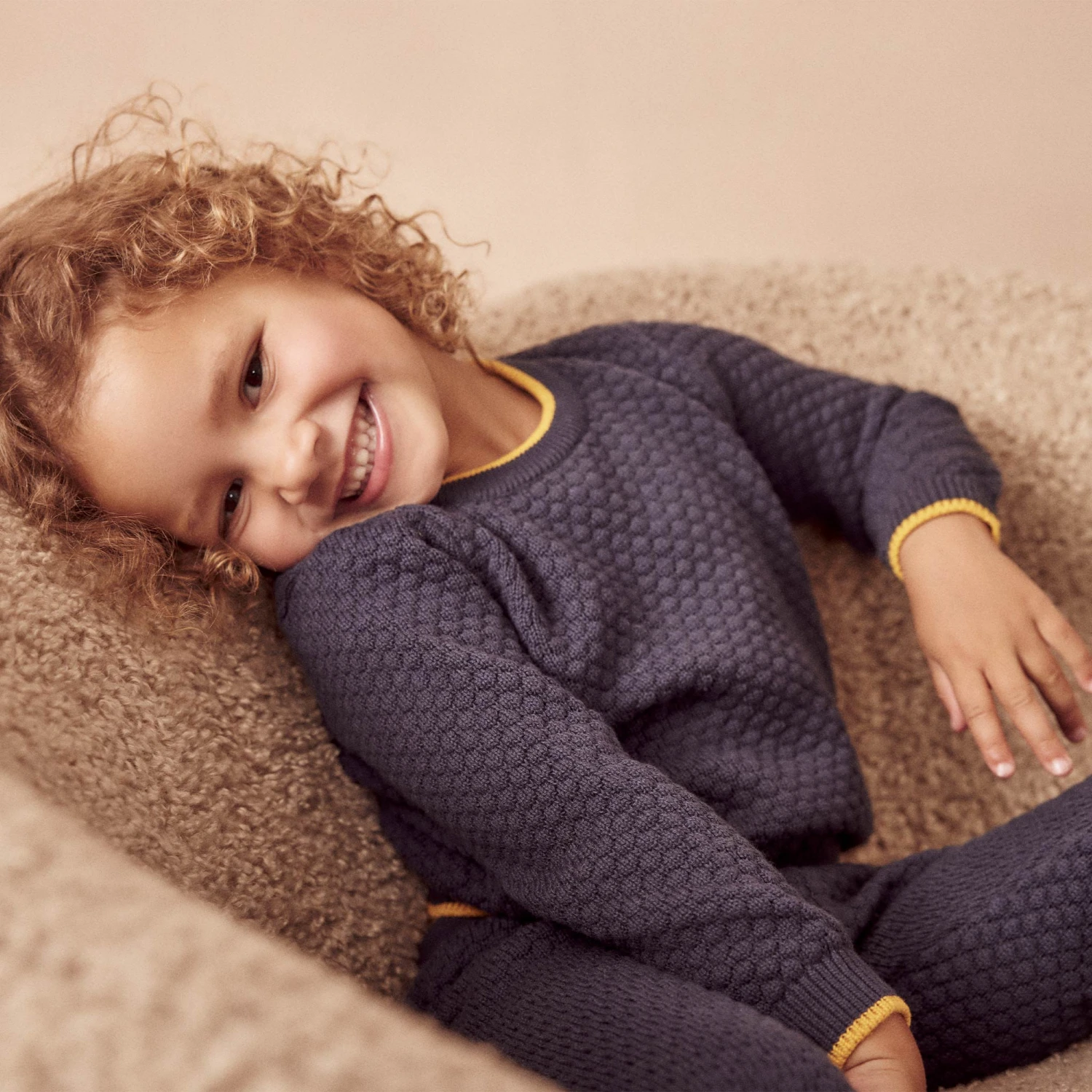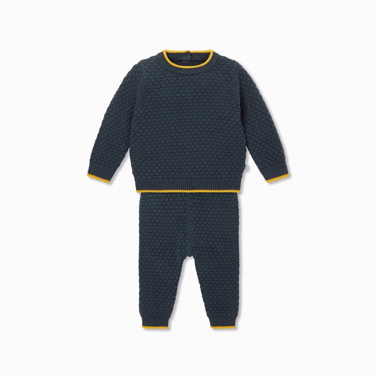 Our comfortable organic cotton Chunky Knit Sweater & Joggers Outfit is perfect for chilly-day playdates.