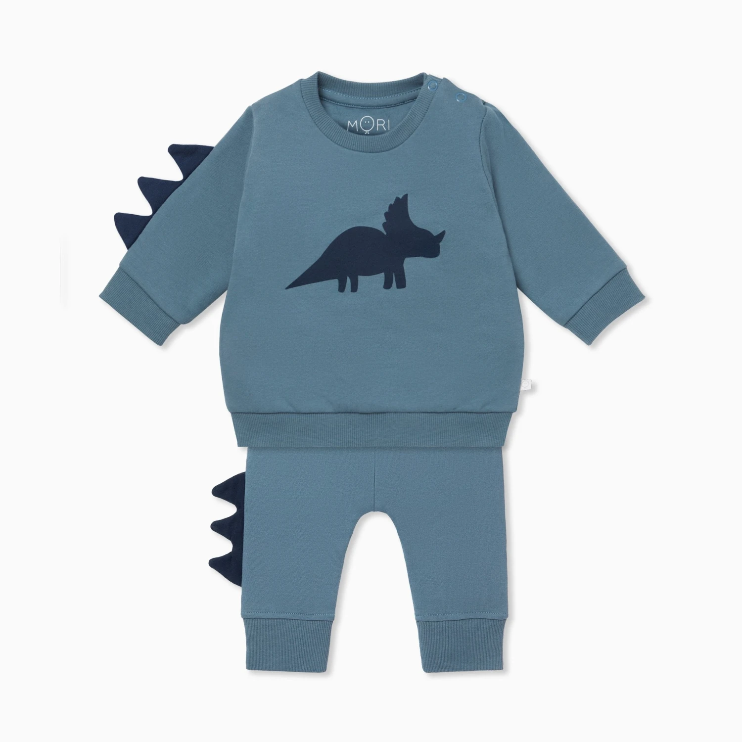 Make adventures days awesome with our Dino Sweater & Joggers Outfit. Both the top & bottoms are made from comfortable organic cotton with a brushed inside for extra softness. They’re detailed with dino spikes on the seams that little ones will love.