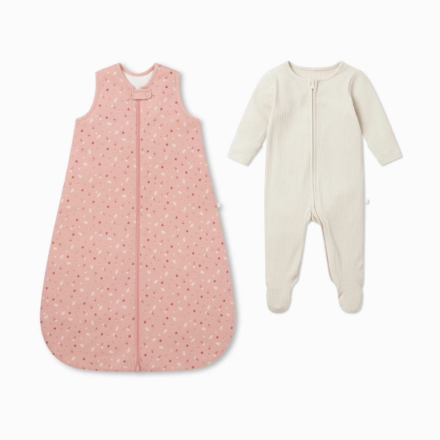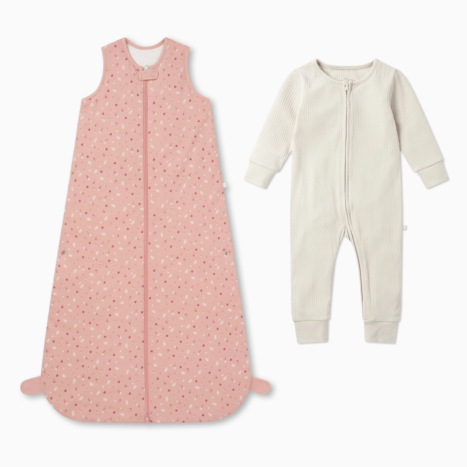 Our Floral & Plain Front Opening Bedtime Set will keep them sleeping soundly all night. Both the sleep sack & baby pajamas are crafted in our softest, thermoregulating fabrics. Designed in a 1.5 TOG, the baby sleeping bag can be used all year-round in a temperate climate. The length is adjustable to grow with your baby or toddler and it zips from the bottom to make nighttime changes simpler.