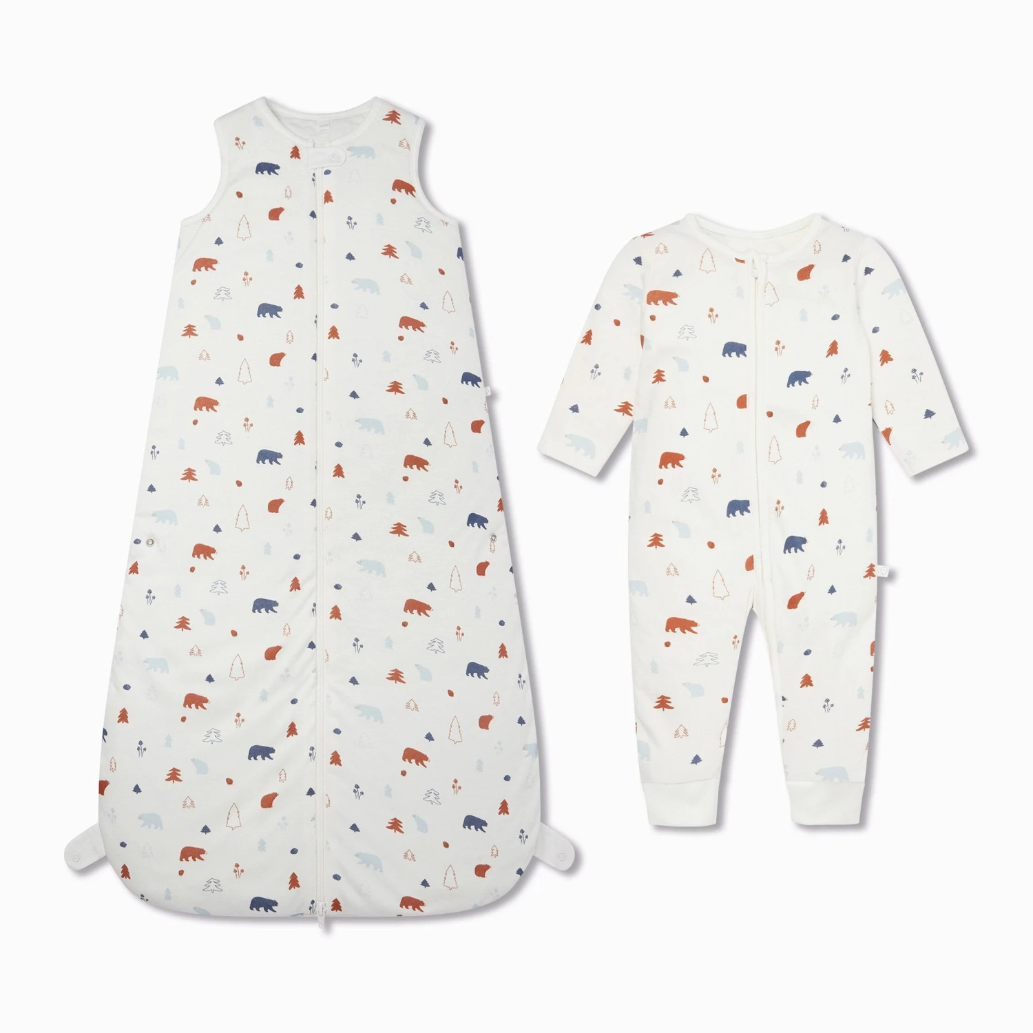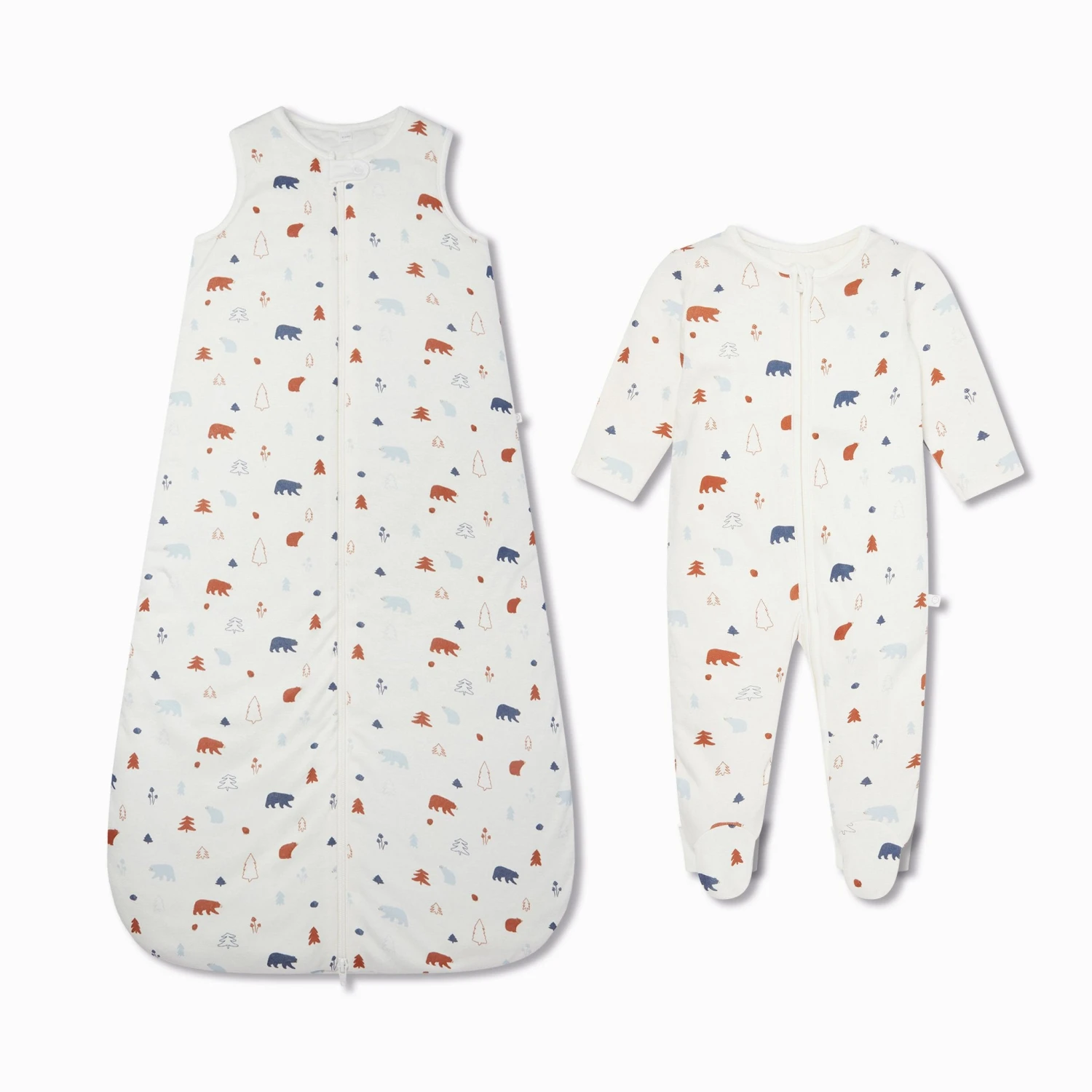 The Forest Bear Front Opening Bedtime Set 2.5 TOG was created for safe and sound sleep every night. The sleep sack and baby pajamas are bestselling products and both made from our organic cotton and bamboo from viscose signature fabric, which is thermoregulating and breathable. They both feature a clever two-way zip to make those nighttime changes simpler.