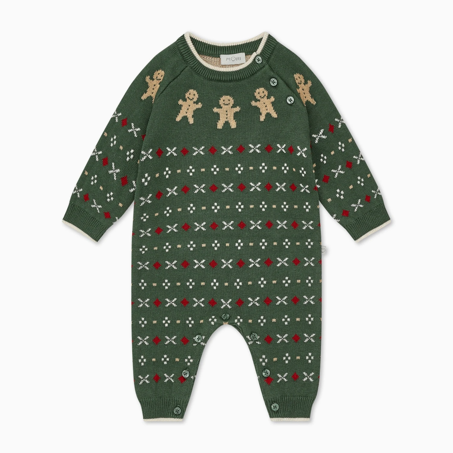 Isn’t this just the sweetest Christmas outfit you’ve ever seen? We think so. Our knitted jumpsuit is made from organic cotton, with buttons on the back for easy changes.