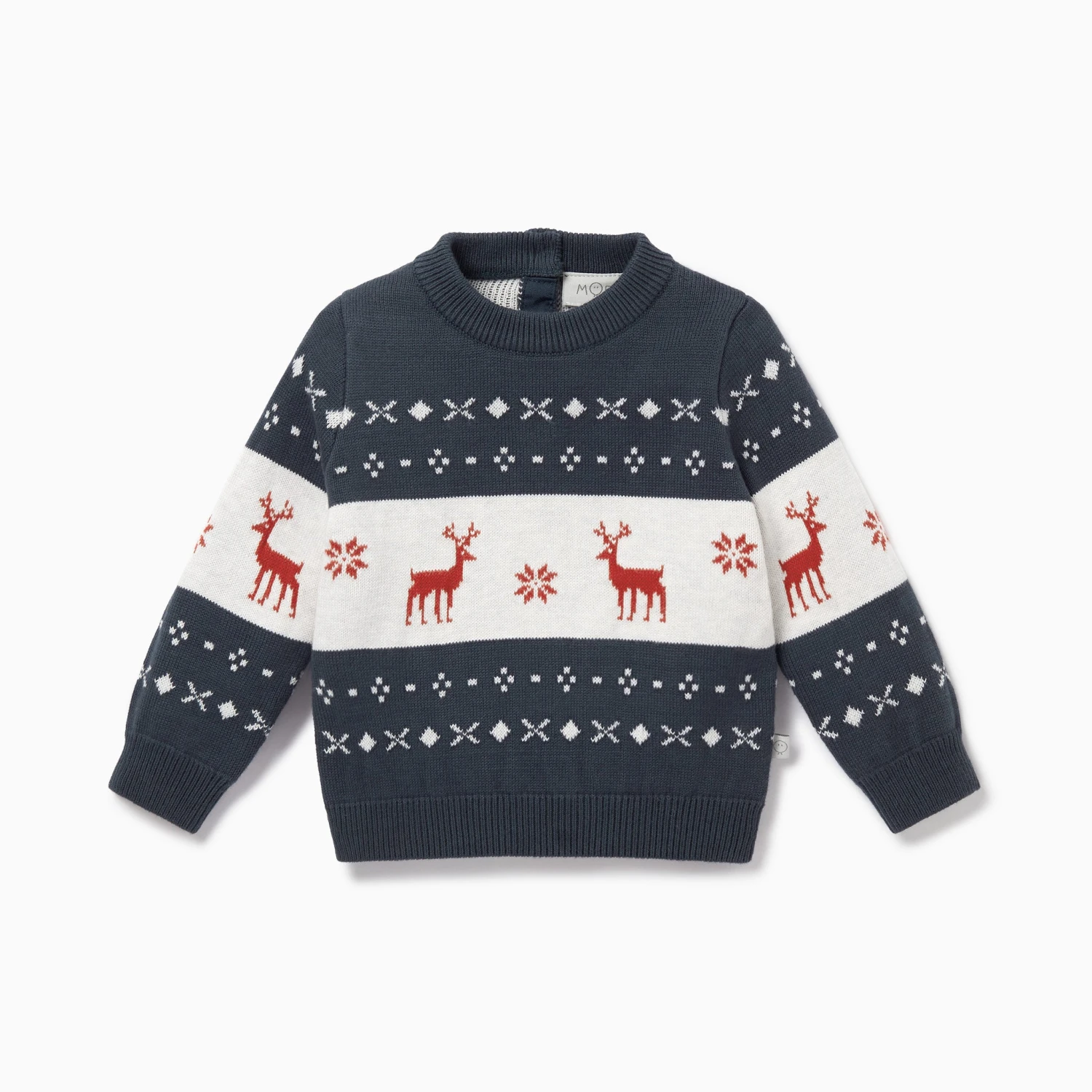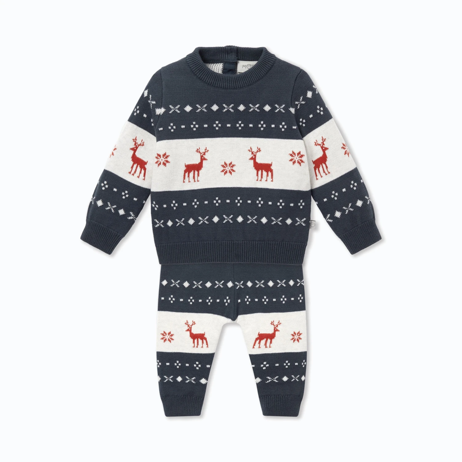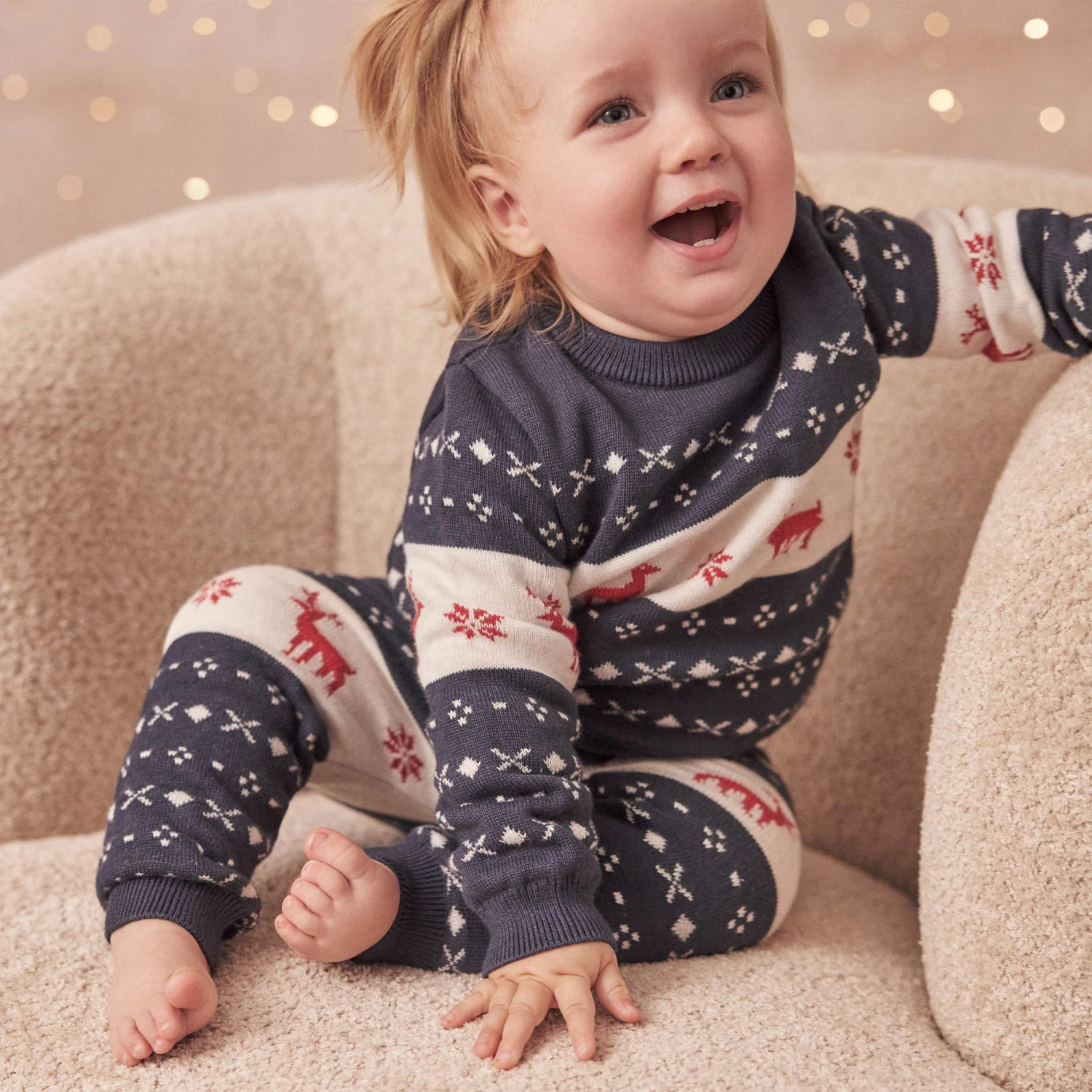 Our Knitted Reindeer Sweater & Joggers Outfit is perfect for the holiday season. Both pieces are made from soft & cosy knitted organic cotton and printed with a fun reindeer motif. The bottoms have an elasticated waistband for comfort. Discover supersoft Christmas sleepwear for the night before too.