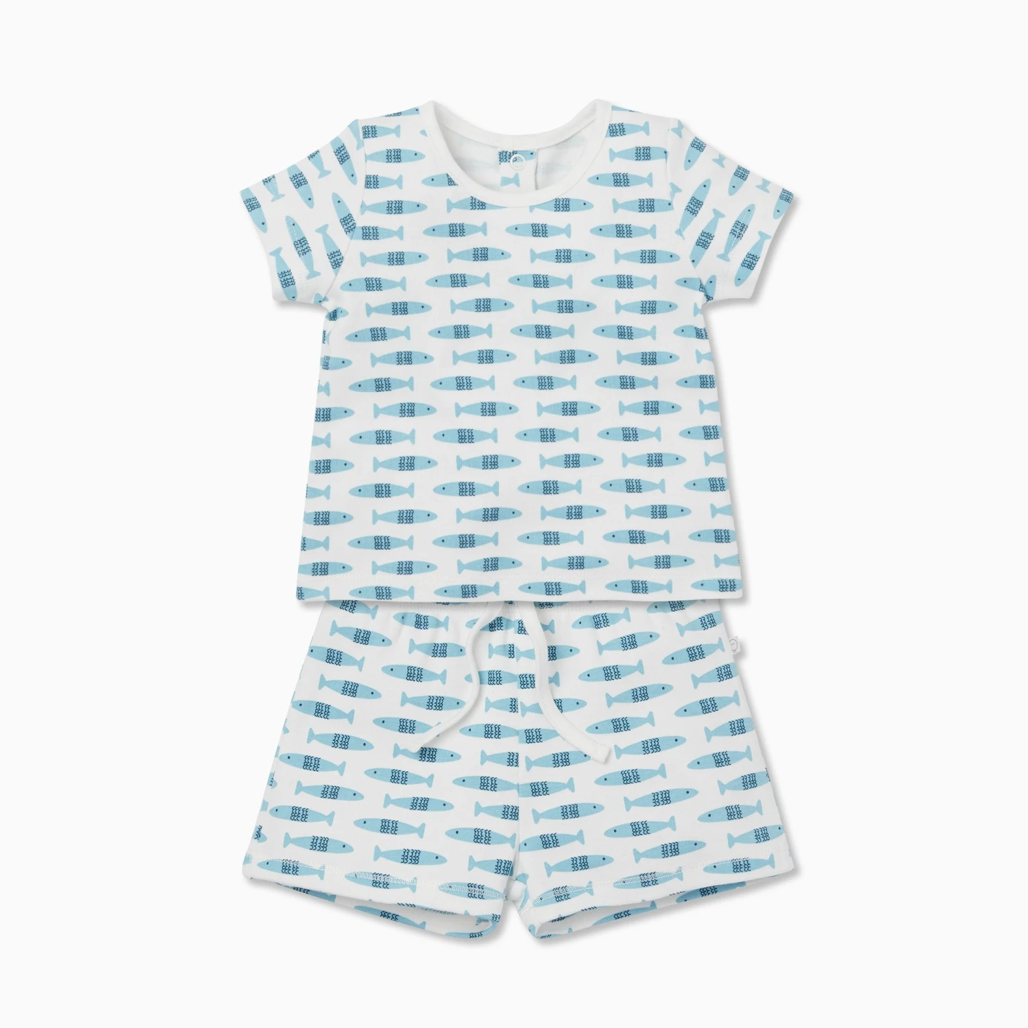 Your little one will go on fintastic adventures in our Little Fish Tee & Shorts Outfit. Made from organic cotton, the breathable fabric keeps them comfortable whilst exploring. The shorts have a drawstring waist for the perfect fit.