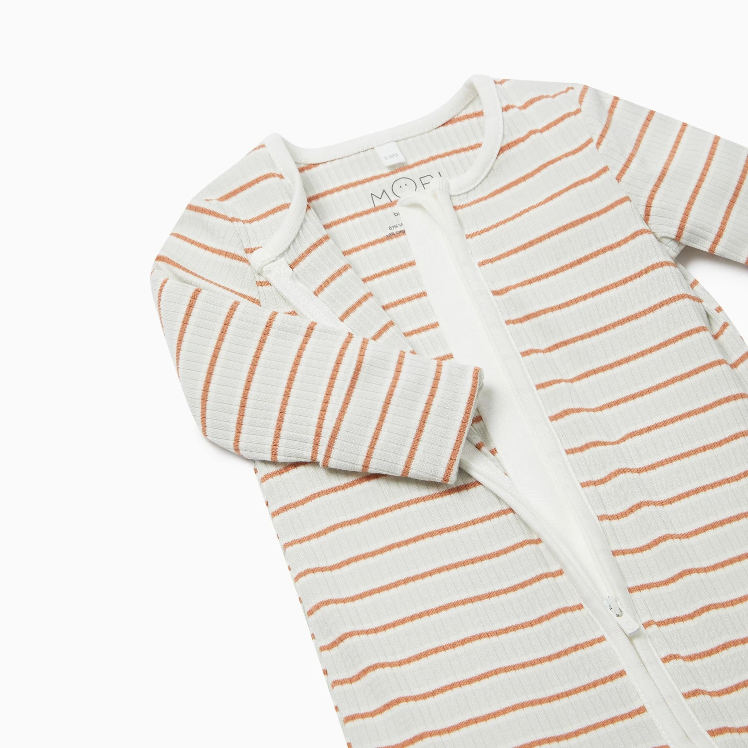 Our Mint Ribbed Stripe Zip-Up Romper made from soft & stretchy organic cotton and bamboo from viscose fabric. It features a handy zip from top to toe for fuss-free dressing.