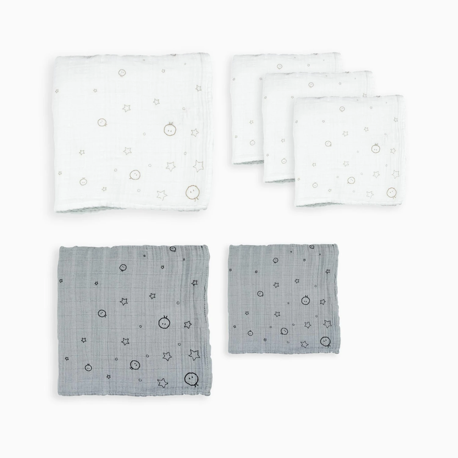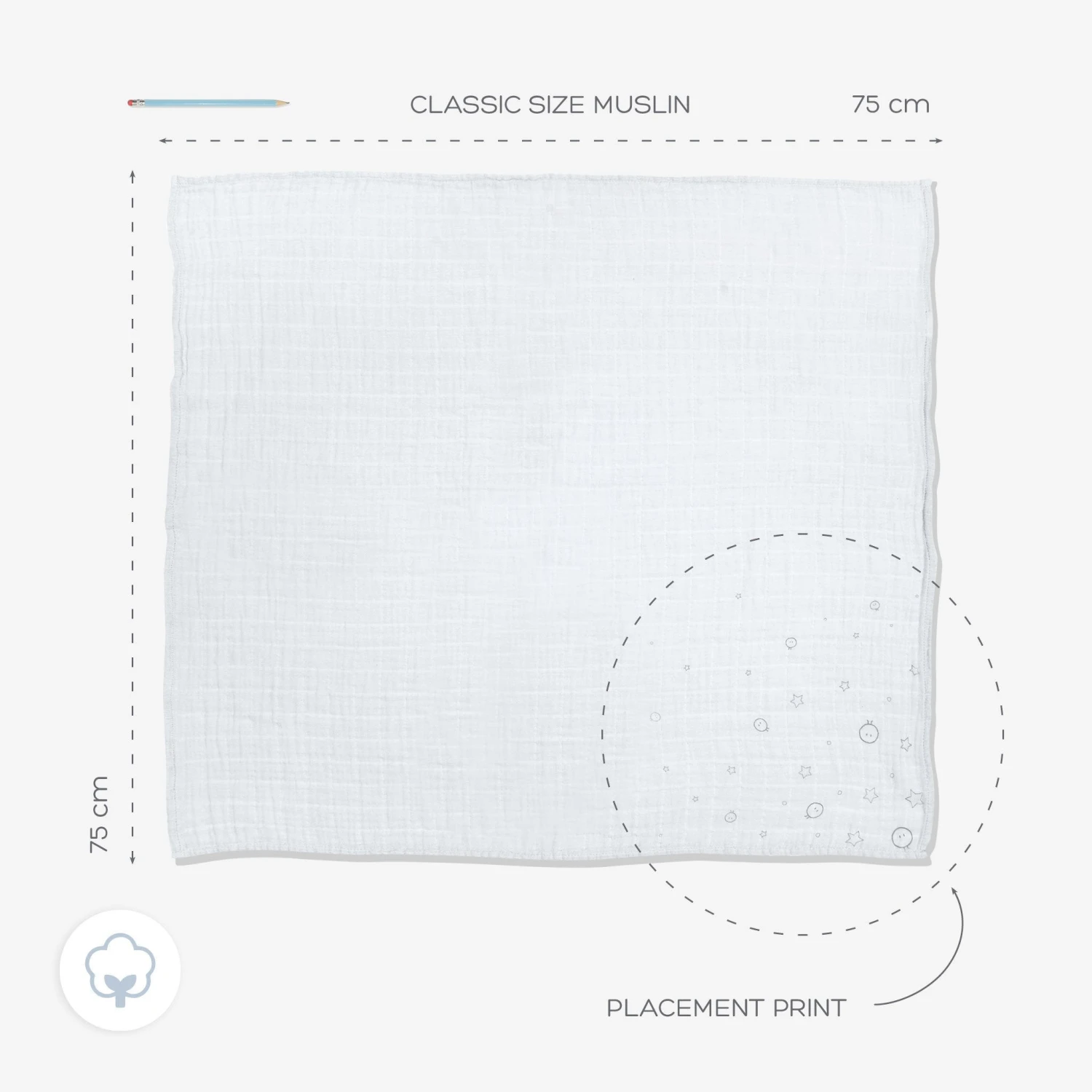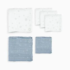 The ultimate essential for parents, the MORI Mixed Muslins 6 Pack includes two extra-large and four classic muslin swaddle blankets. All of our muslins are thoughtfully crafted from 100% pure cotton, which makes them breathable, soft, and durable. The muslin swaddles are loosely woven to ensure they’re safe to be used for swaddling a newborn baby or as a comforter, so parents won’t have to worry about baby overheating. The pack contains 2 large sized muslins and 4 regular sized muslins. Perfect for a myriad of uses from burp cloth to swaddle. Each muslin features a MORI print in one corner.