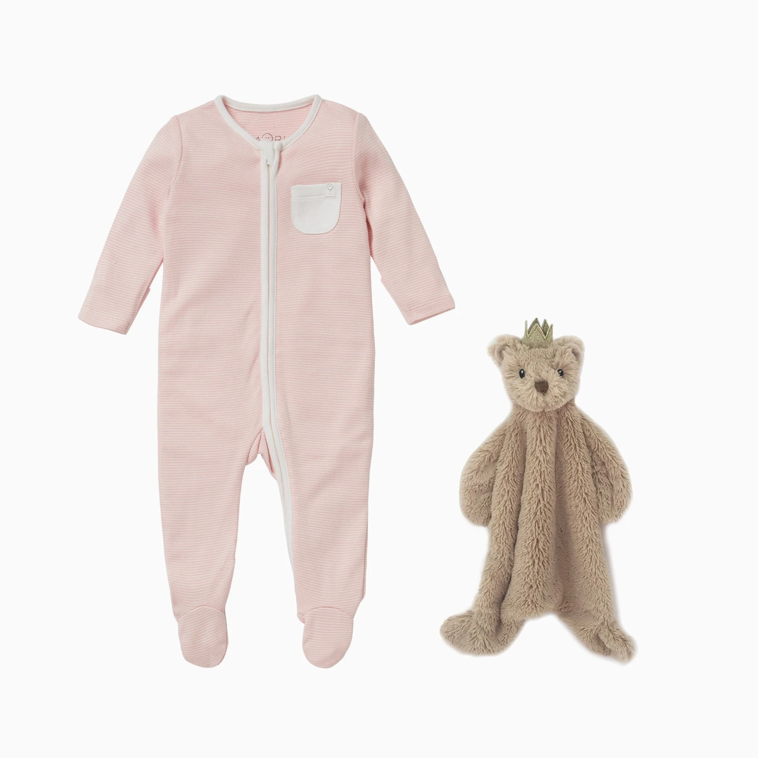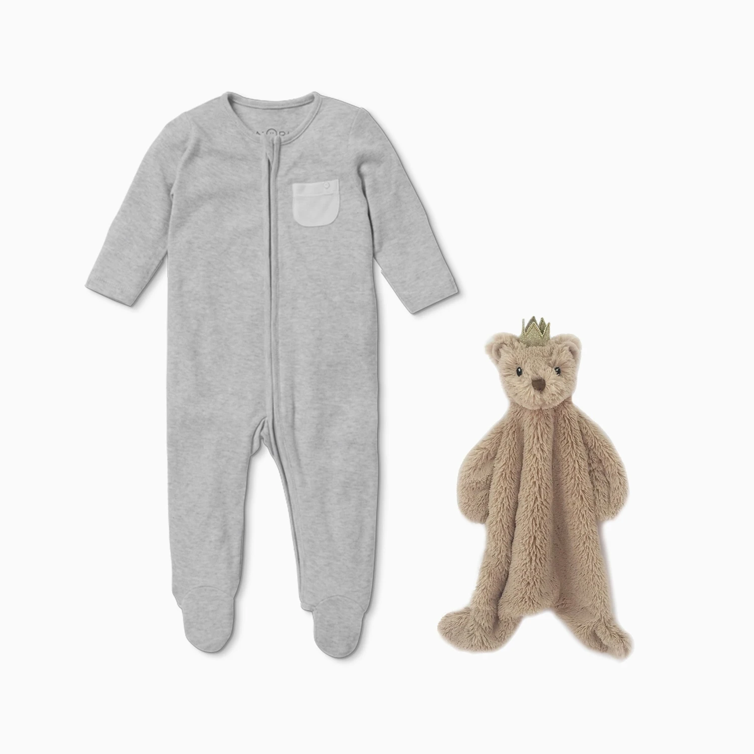 There’s nothing more special than a personalized baby gift for a newborn. Our Personalized Baby Gift Set makes a wonderful baby shower or Baptism present. The set includes our bestselling Clever Zip Baby Pajamas which can be personalized with a name and is crafted from the softest organic cotton and bamboo. The Mon Ami Prince Bear Security Blanket will make the perfect snuggling companion for a newborn.