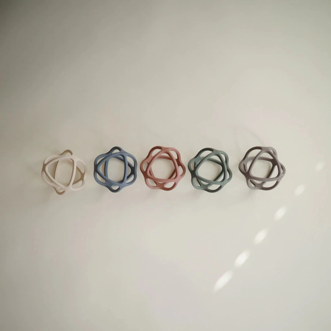 The Mushie Silicone Teether Ball is a stylish and safe option to soothe your little one’s sore gums. It’s made from non-toxic, food-grade silicone and designed to be easy to grasp.