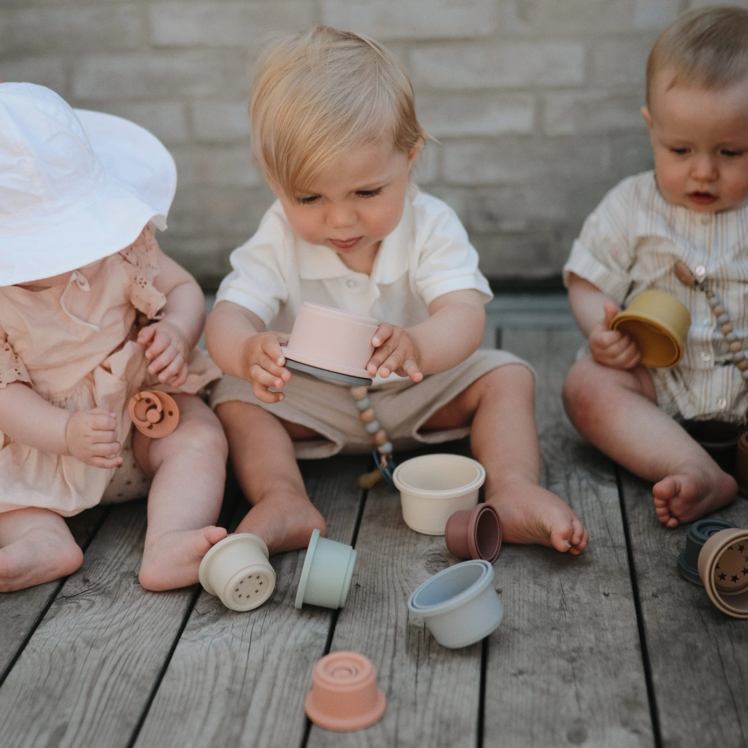 The Mushie Stacking Cups Toy is fun and engaging for a baby to look at whilst helping to develop their motor skills. The cups feature distinctive holes on the bottom for water play and come in muted colours.