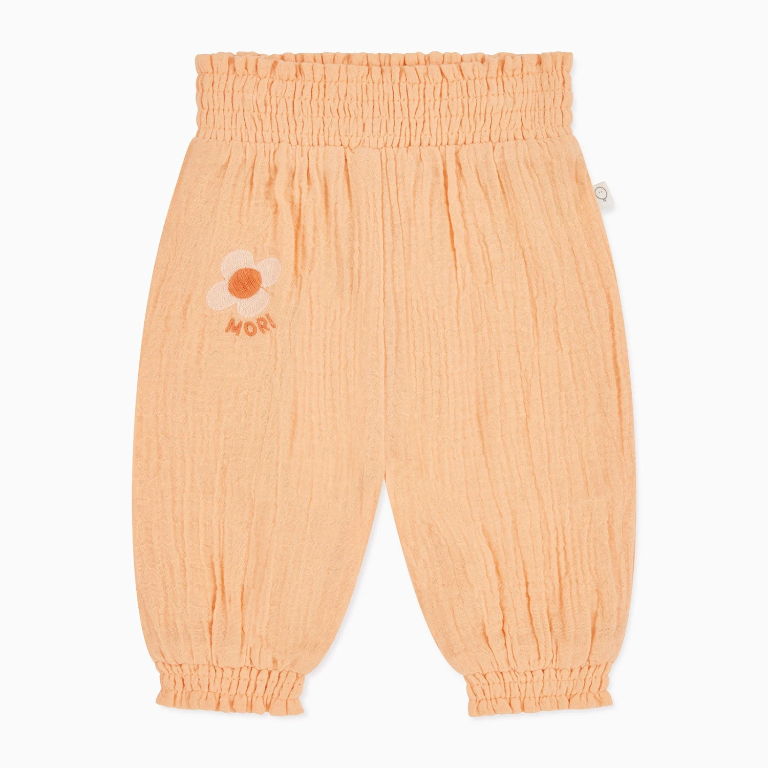 We know comfort is a top priority when it comes to dressing little ones in the heat, so we’ve made these floaty pants out of organic cotton muslin. They have a smocked waistband for easy on and off too.