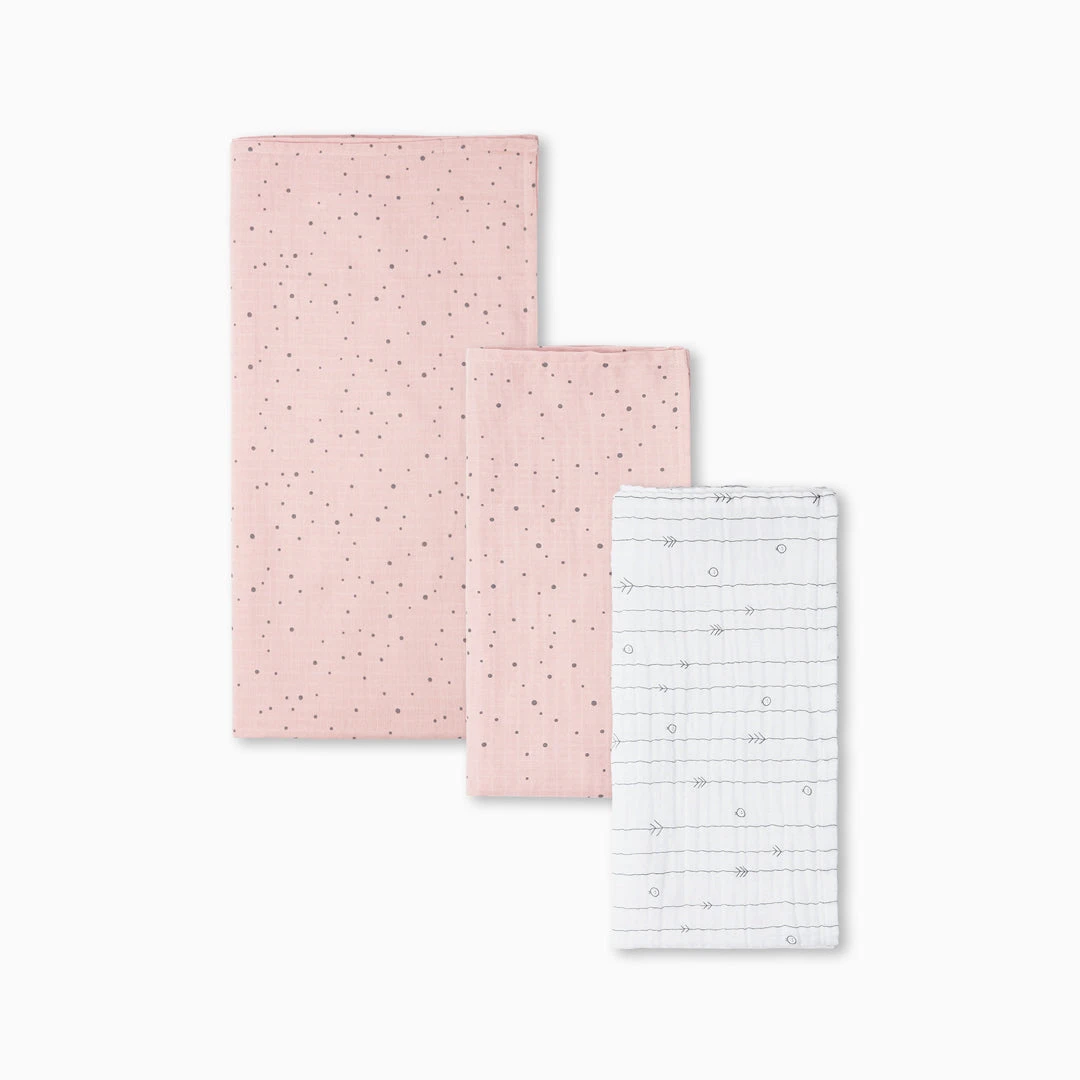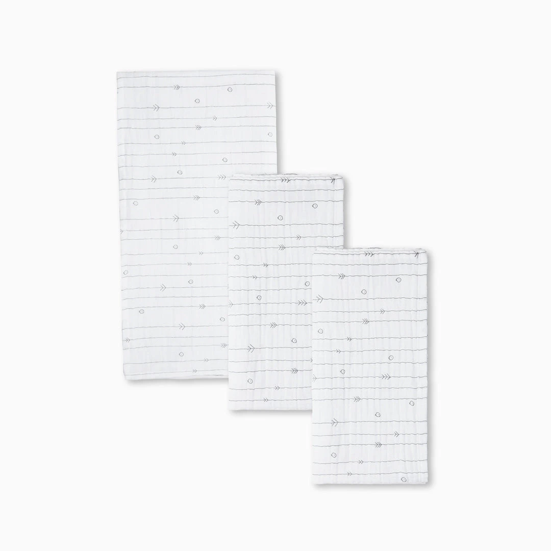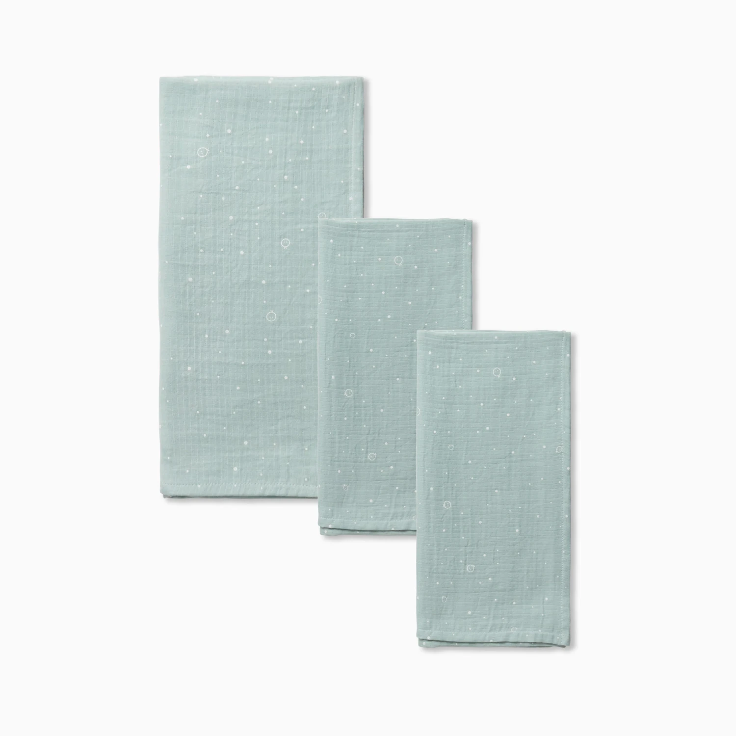 The Organic Muslin & Swaddle Set is a must-have for every parent. Crafted in breathable organic cotton, the set contains two regular sized muslins and one large muslin swaddle which are perfect for every moment.
