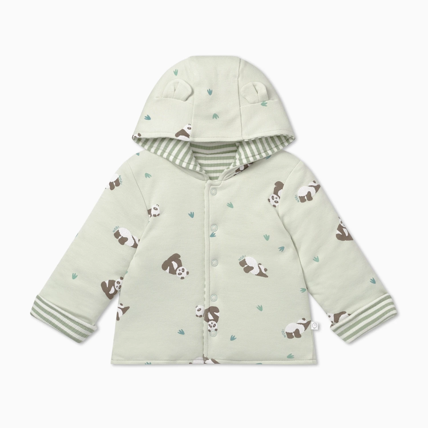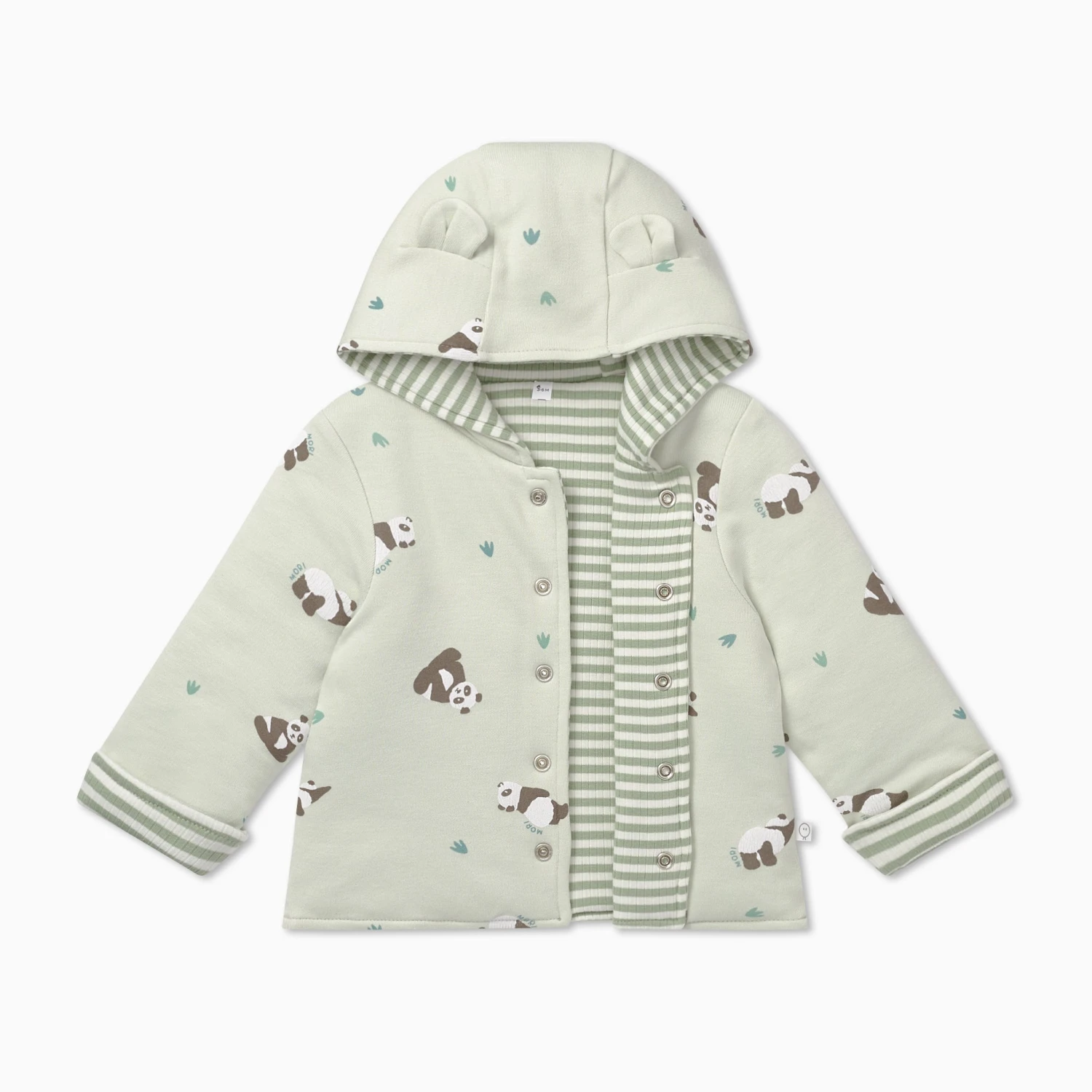 Made for chilly days, our reversible panda jacket is padded for warmth. It’s crafted in our softest signature fabric with a ribbed inside. The jacket fastens with poppers and features a cute hood with ears.
