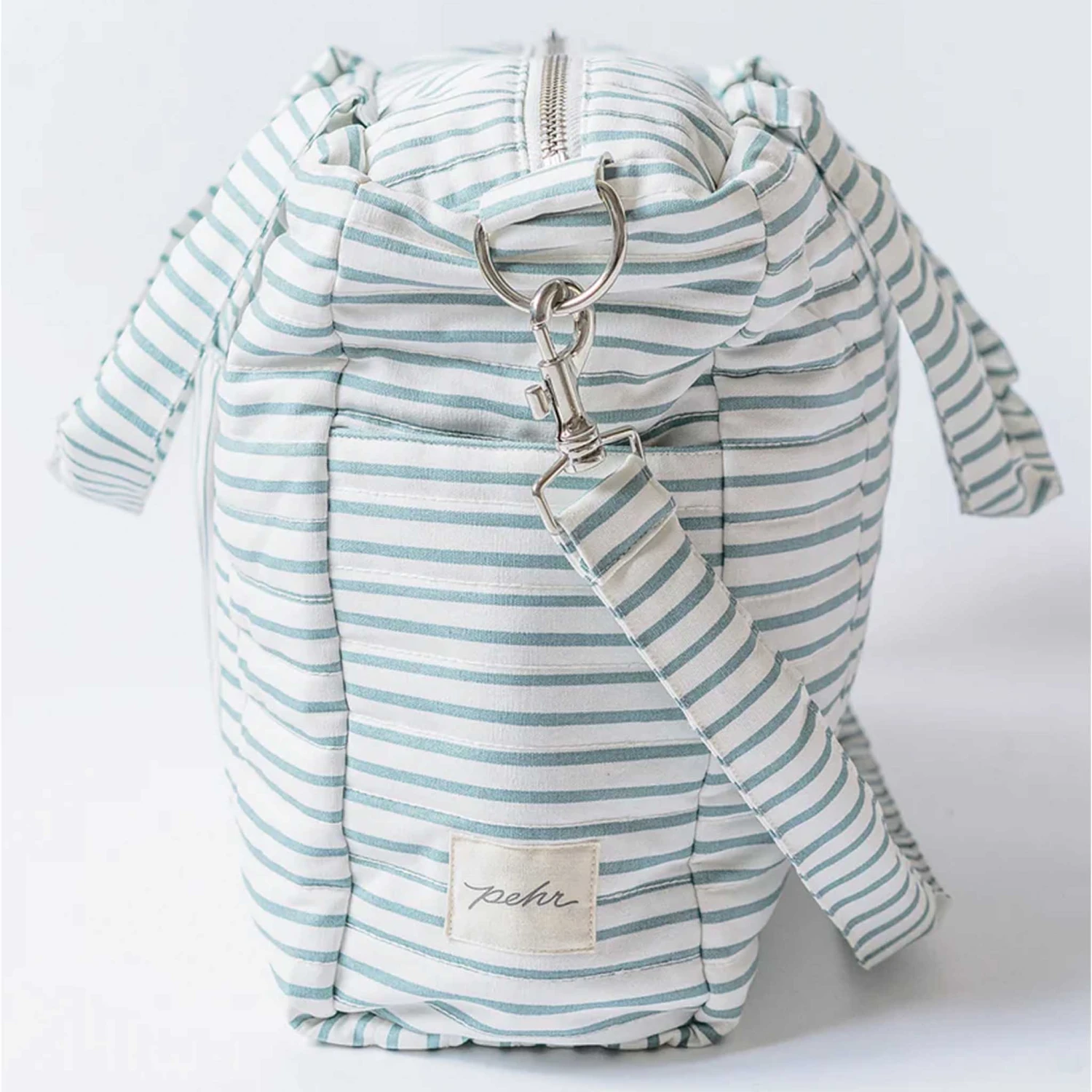 Cleverly designed, the Pehr Stripes Away Diaper Bag has plenty of pockets to hold everything you & your little one need whilst out and about. It’s made from organic cotton with a wipeable lining to keep it clean. The main zipped compartment is filled with lots of pockets to store essentials, with outer pockets too for easy-to-grab items.
