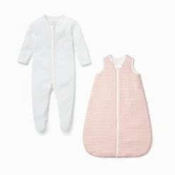 Our Pink Stripe Front Opening Bedtime Set 1.5 TOG will keep them sleeping soundly all night. Both the sleep sack & baby pajamas are crafted in our softest, thermoregulating fabrics. Designed in a 1.5 TOG, the baby sleeping bag can be used all year-round in a temperate climate. The length is adjustable to grow with your baby or toddler and it zips from the bottom to make nighttime changes simpler.