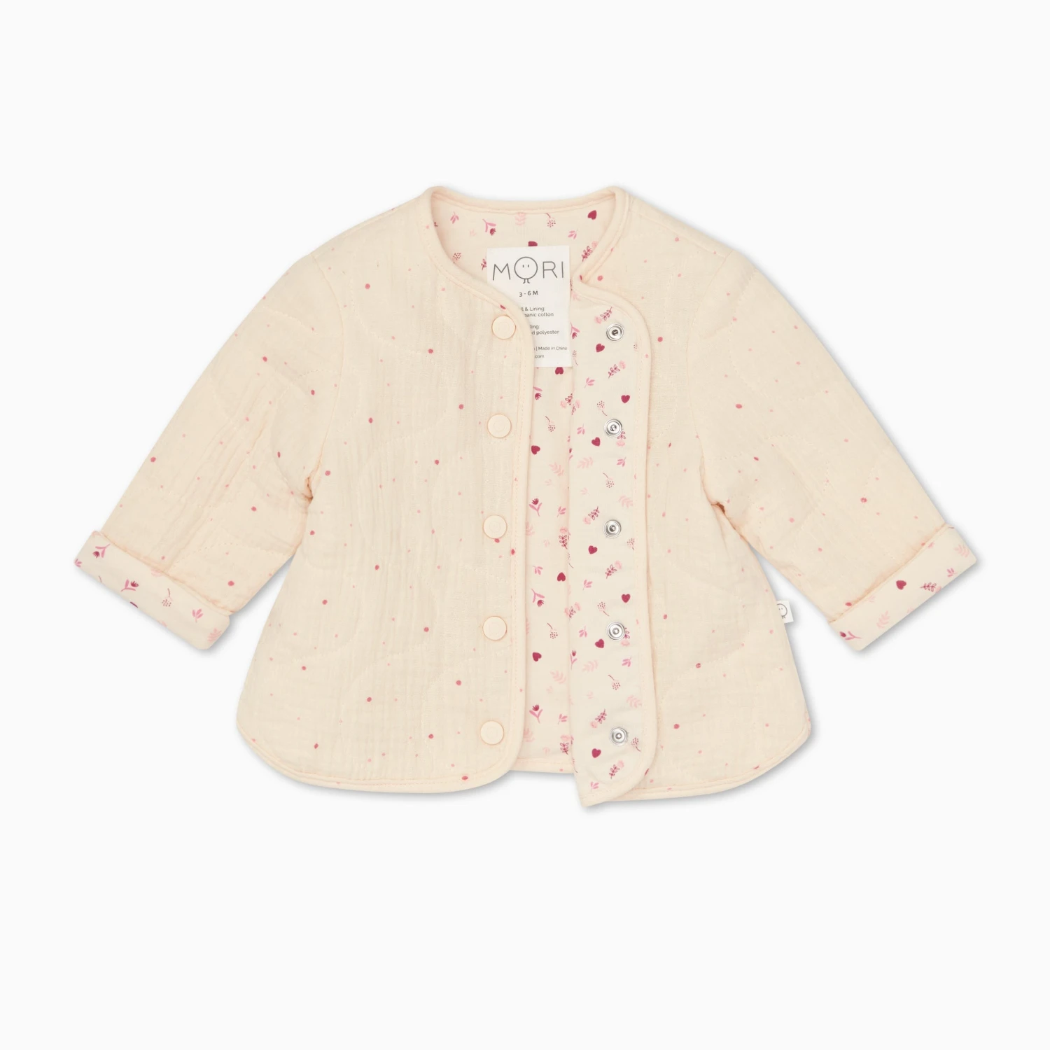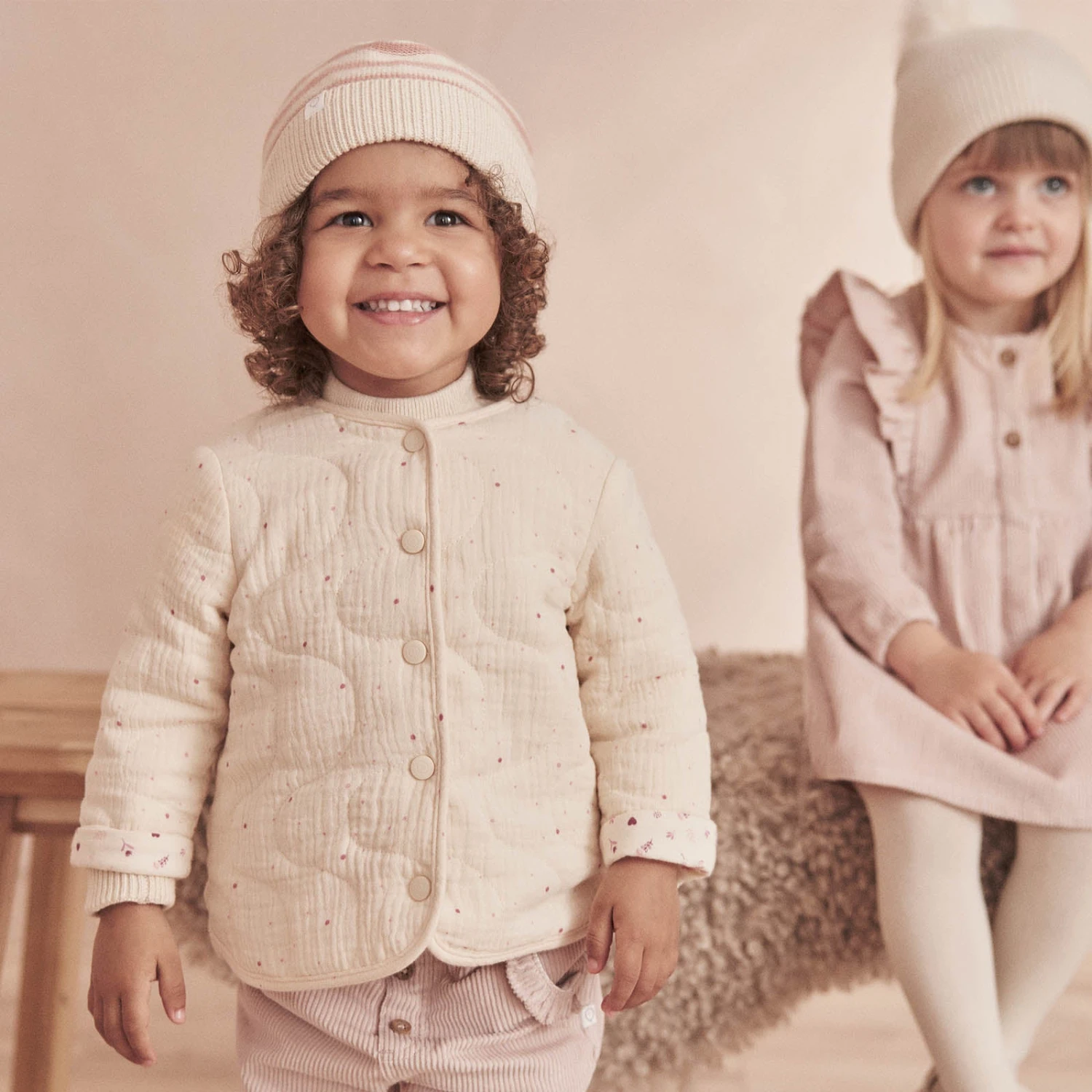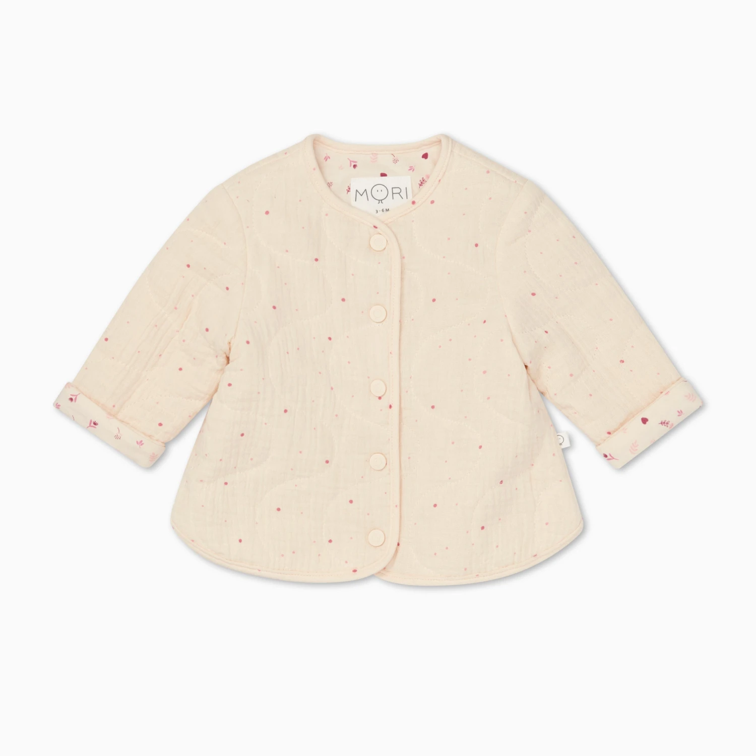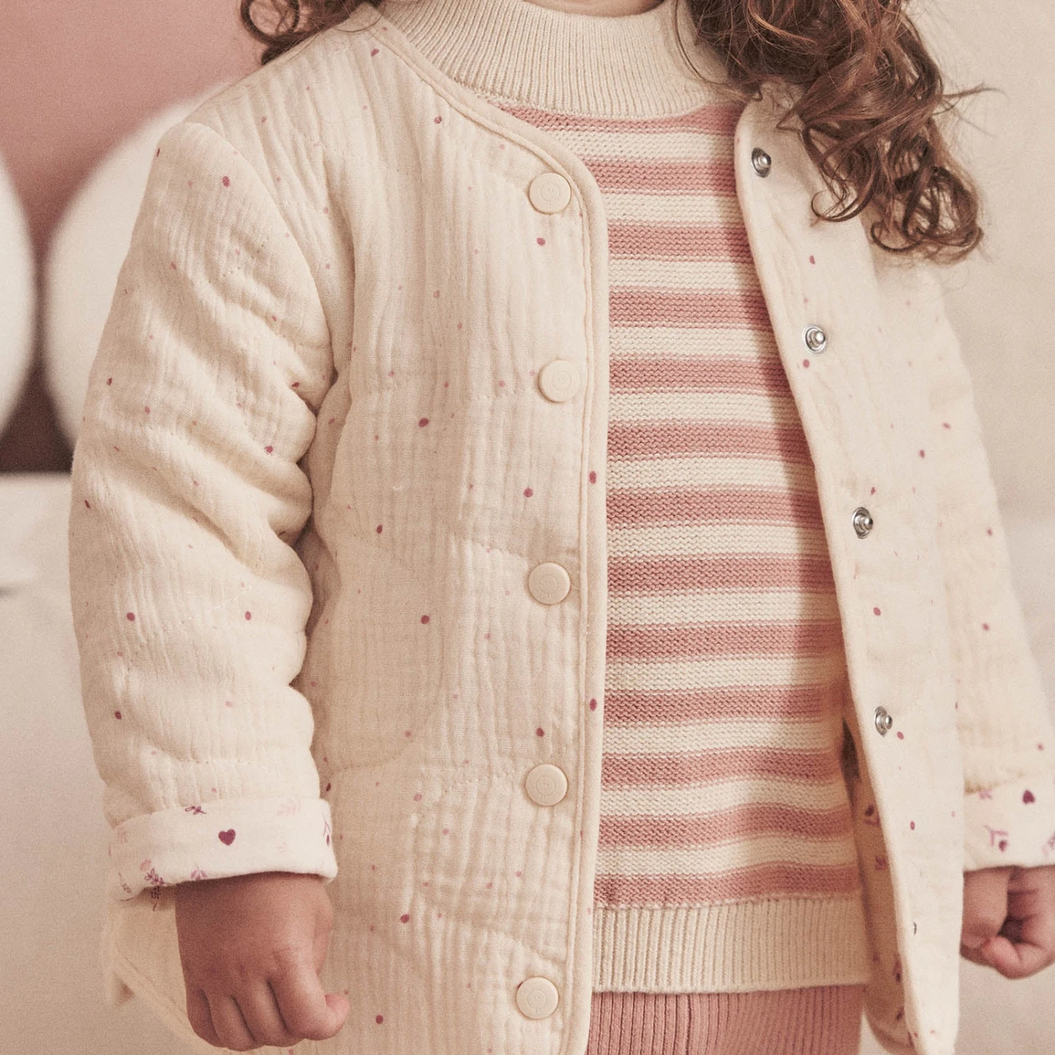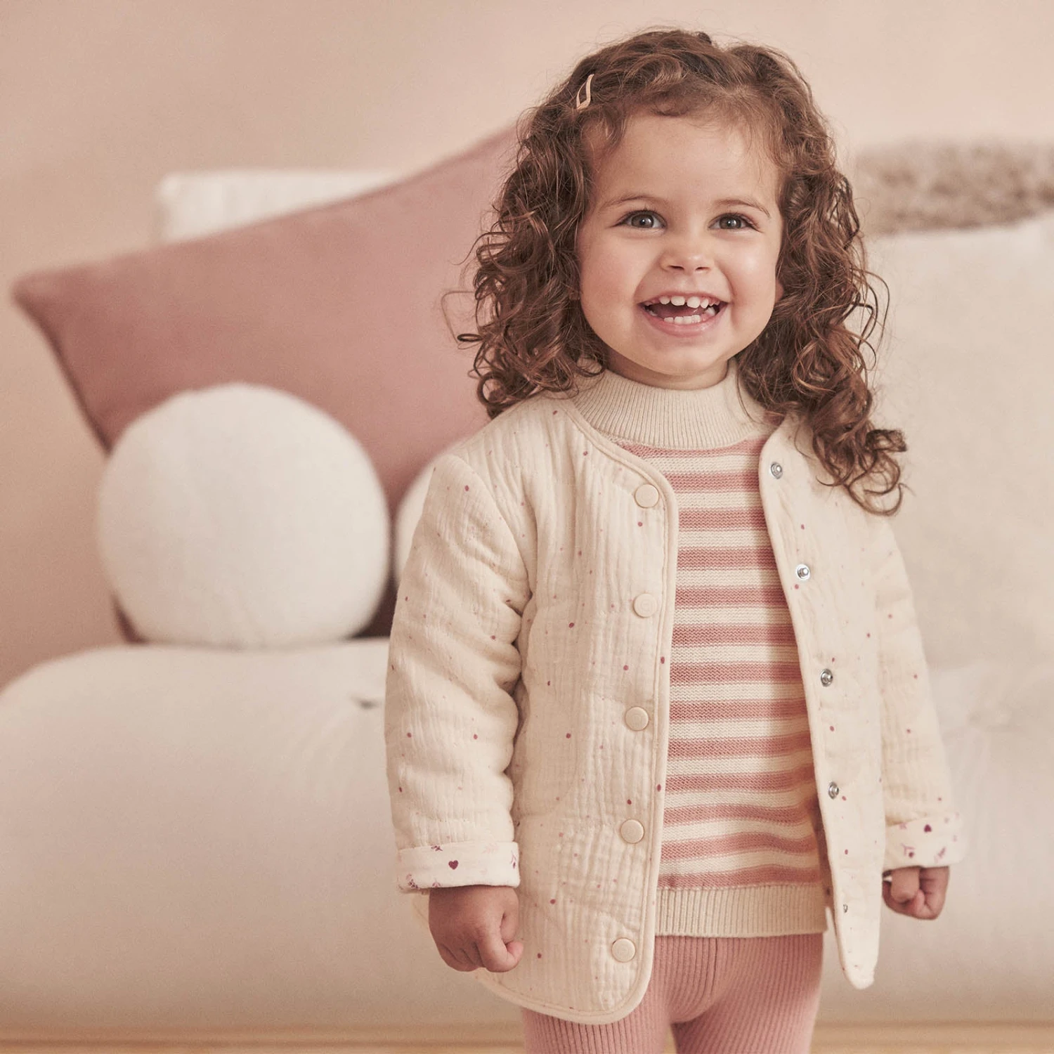 Lightweight but still warm, our Polka Dot Quilted Jacket is perfect for those in-between days. We’ve added poppers on the front to make dressing quick & easy.