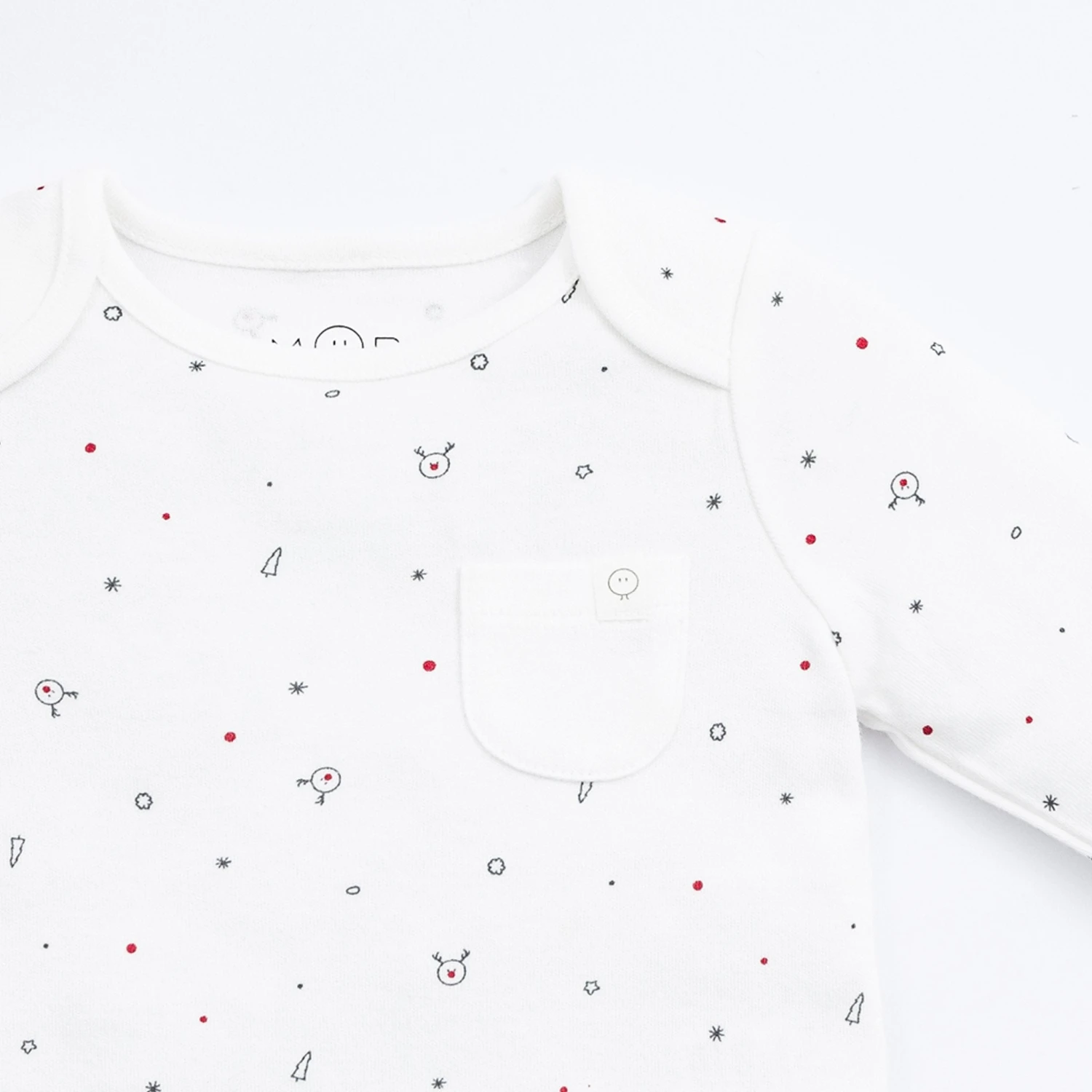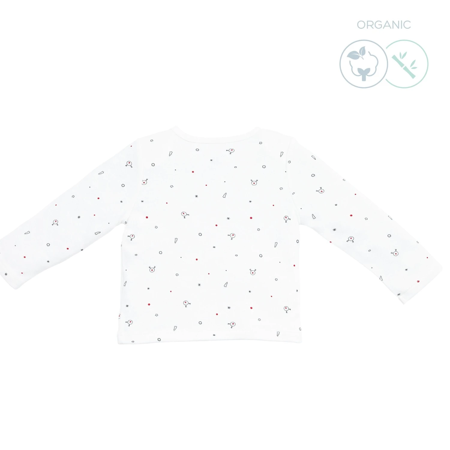 Carefully crafted from our soft and safe signature bamboo from viscose & organic cotton blend, the Reindeer Long Sleeve T-Shirt is the perfect pyjama top. Made from our signature material to protect little one’s delicate skin all day and night. With easy opening popper detailing on the shoulder, the t-shirt is comfortable and cosy. Add gift-wrap for the perfect baby gift.