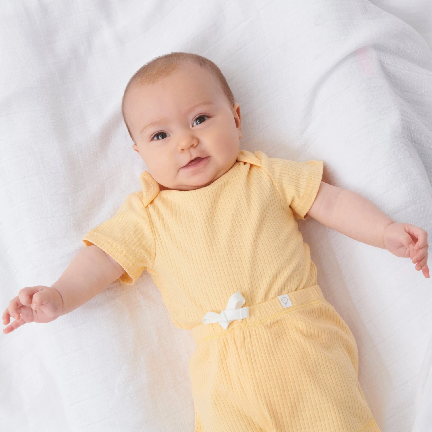 Dress your little one in the softest pieces every day with our Ribbed Short Sleeve Bodysuit 4 Pack Made from bamboo from viscose and organic cotton, the baby bodysuits have poppers on the crotch and an envelope neckline for quick & easy dressing.