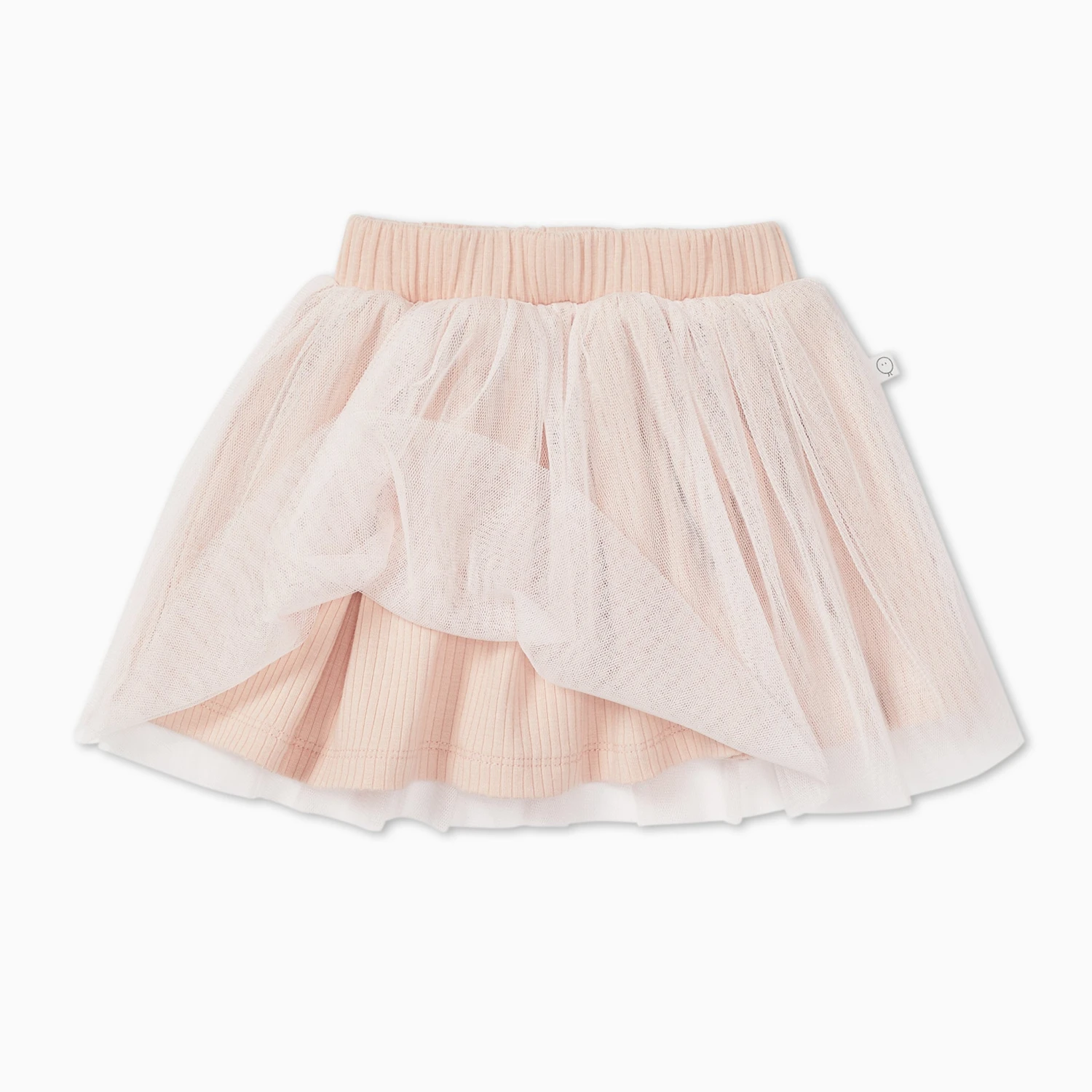 Our tutu skirt is perfect for parties & playdates. It features a twirly tulle overlay with our comfy ribbed fabric underneath. An elasticated waistband makes for fuss-free dressing.