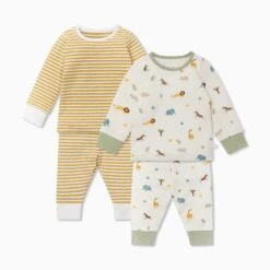 Softer than their wildest dreams, our Safari Pajama Set 2 Pack guarantee a better night’s sleep for every little one. The safari pair is crafted from our breathable signature fabric featuring a playful safari design. The other is decorated with mustard stripes and made in our softest ribbed fabric with a little stretch.