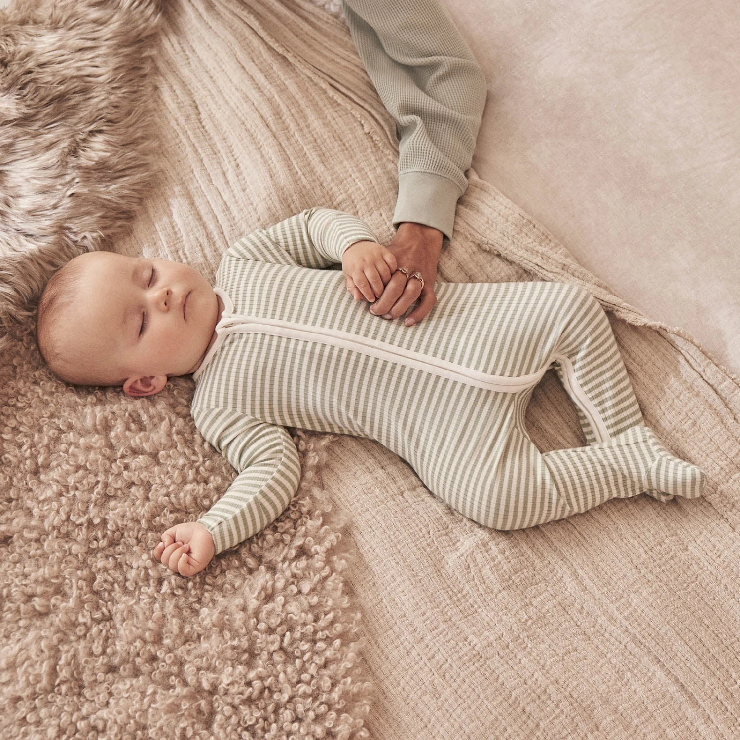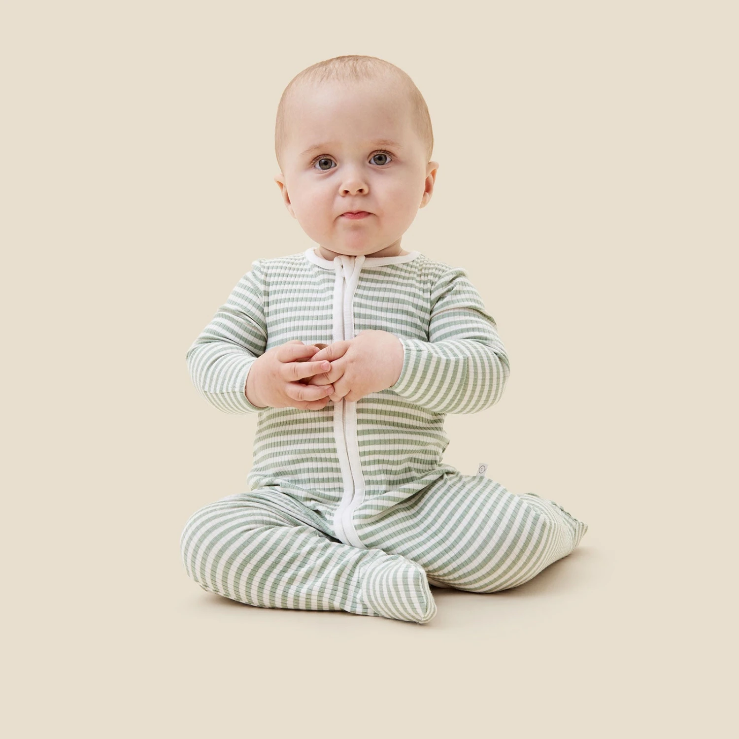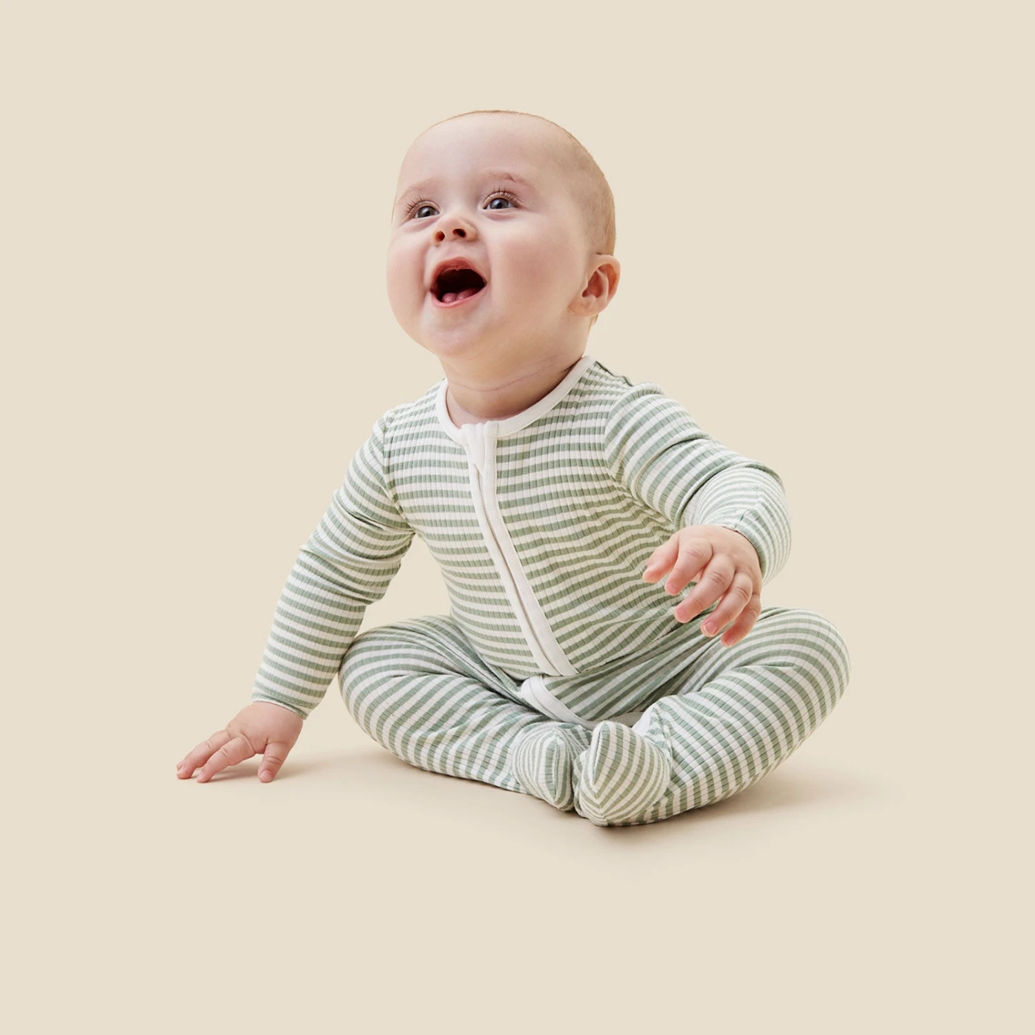 Our Sage Stripe Ribbed Clever Zip Footed Baby Pajamas are thoughtfully designed for better sleeps. They’re crafted in our breathable signature fabric to keep little ones sleeping peacefully. The baby pajamas feature a concealed double-directional zip from head to toe to make dressing and changes simpler.