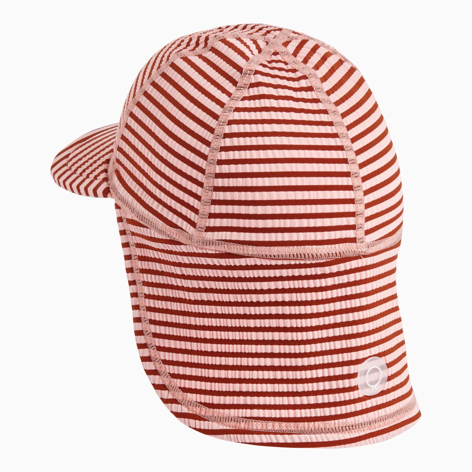 A fixed peak and neck cover makes our Seersucker Stripe Sun Safe Swim Hat perfect for sunny days by the pool. It’s made from recycled nylon with stretch for comfort. The fabric has a UPF 50+ rating for sun safety.