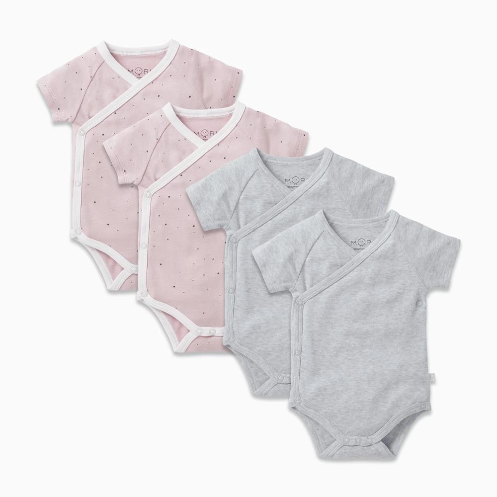 Look cool and feel comfortable with our 4 pack of Short Sleeve Kimono Bodysuits. Made from the softest organic cotton and bamboo from viscose fabric, your baby or toddler can wear the breathable bodysuits all summer.