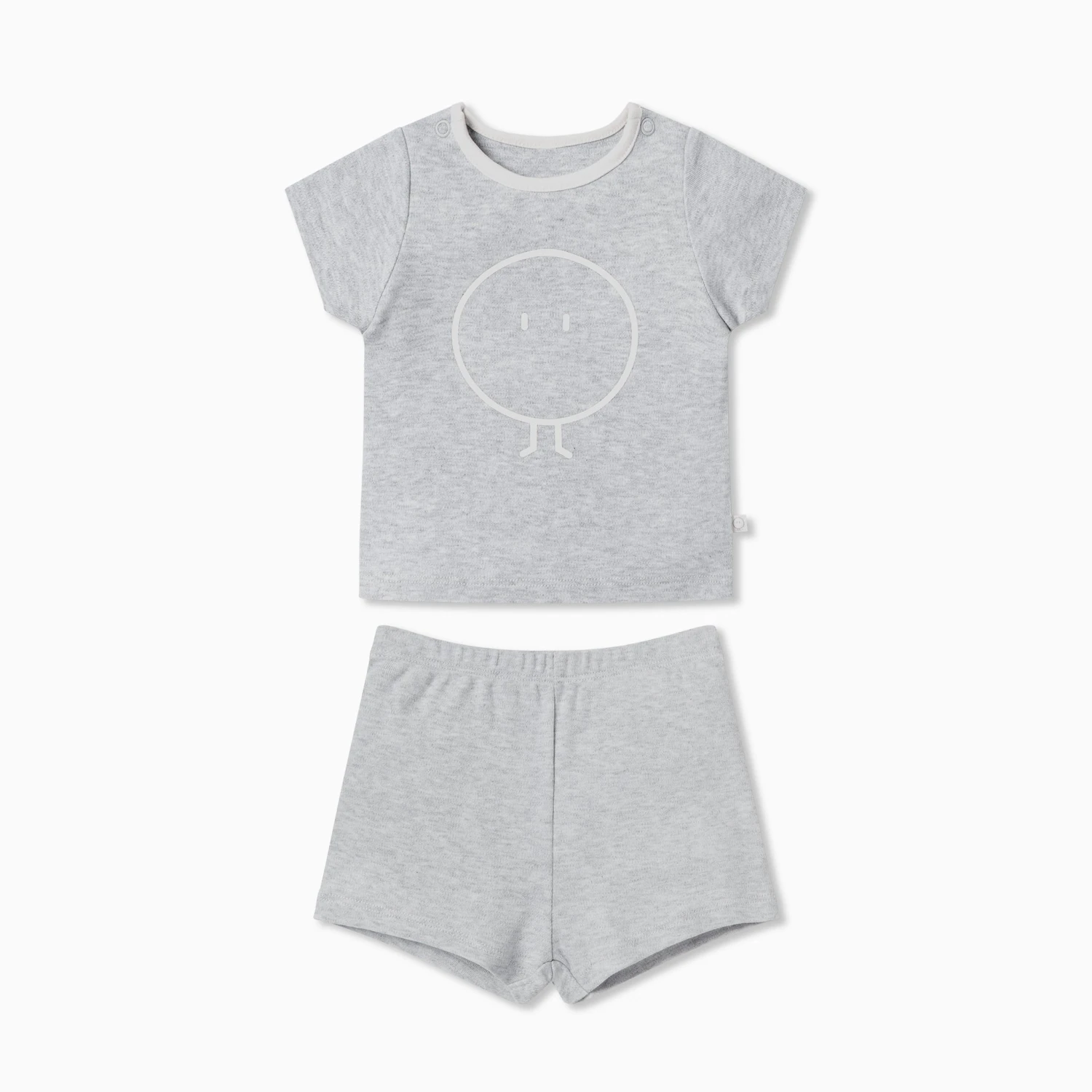 The Snoozy Summer Pajama Set will ensure your little one has the softest sleep every night. The pajamas are made from our signature fabric which is breathable and thermoregulating to keep them cool. The top has poppers on the shoulder up to 2 to make dressing a baby simpler. The shorts have an elasticated waistband for comfort.