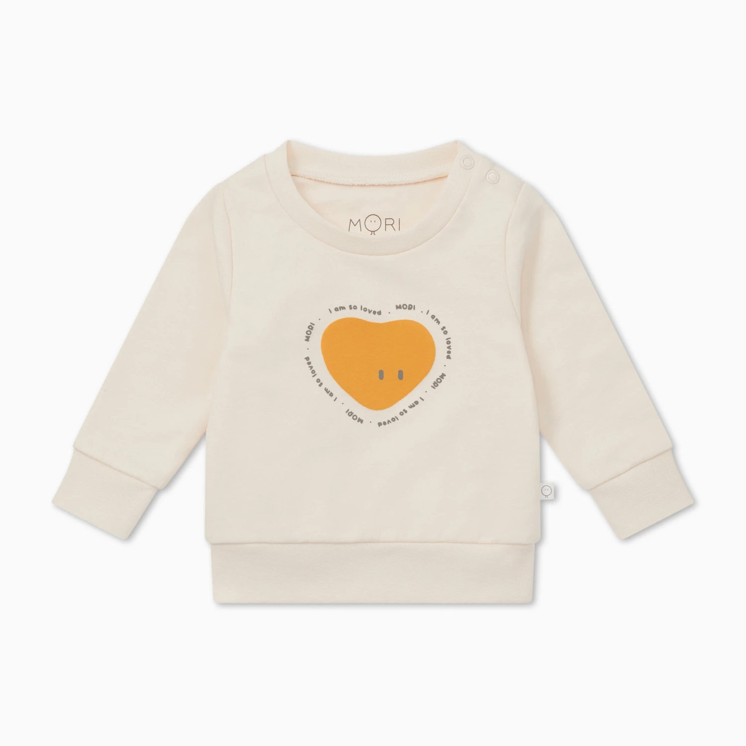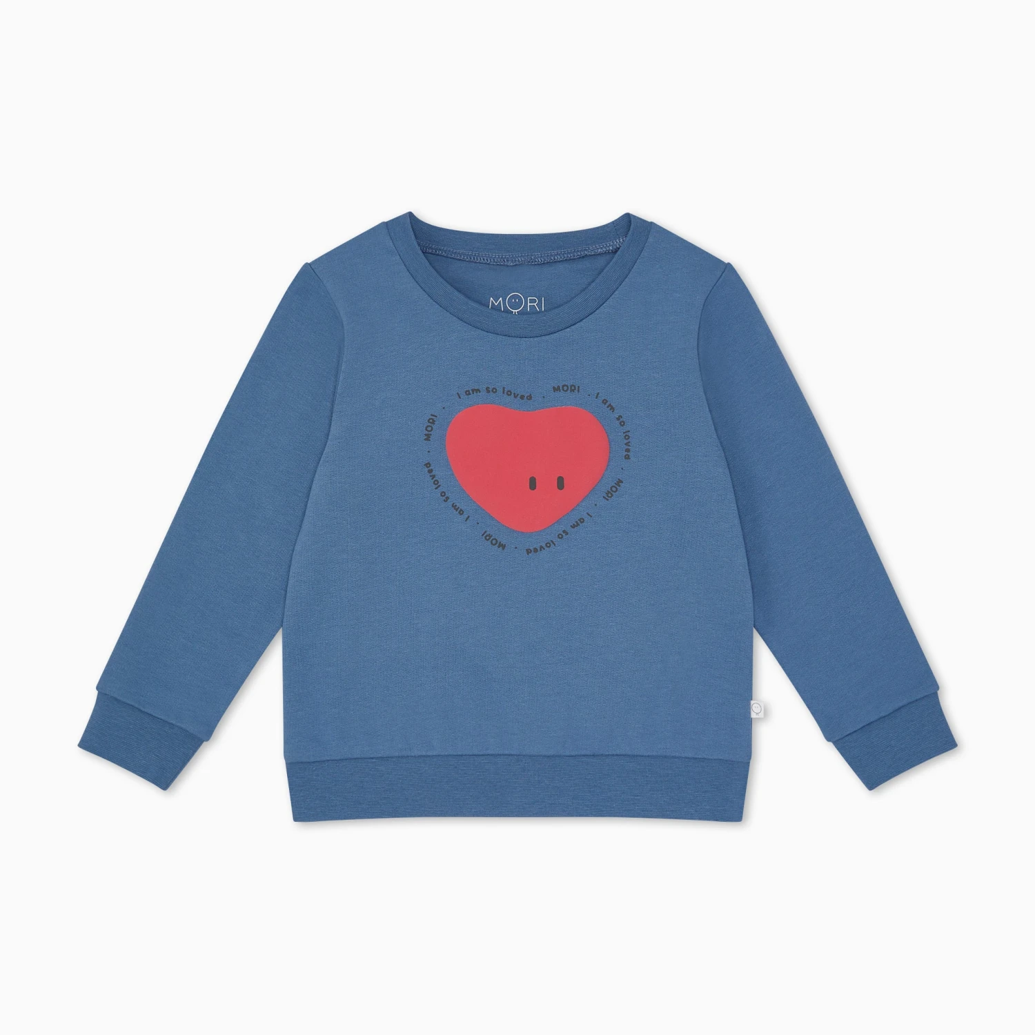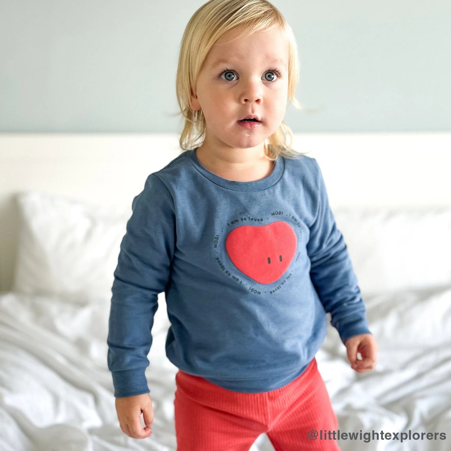 Our organic cotton sweater is decorated with a MORI heart surrounded by an ‘I am so loved’ slogan, so you can show your little one (and the world) how you really feel.