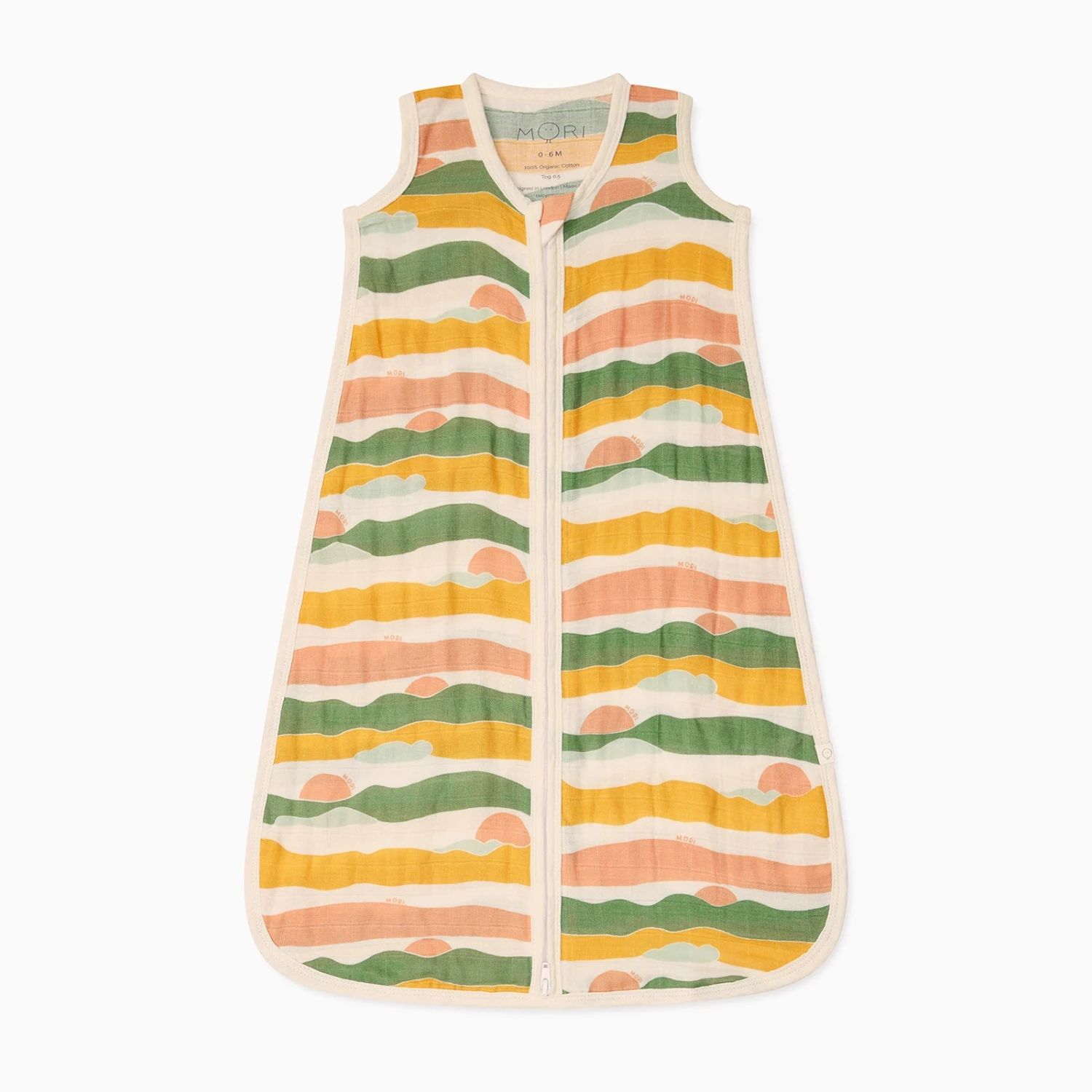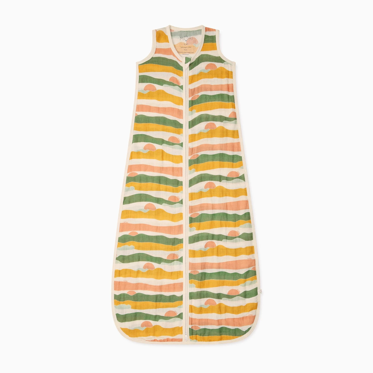 Our colorful sunset print muslin sleep sack is perfect for summer slumbers. It’s designed to keep little ones cool, made from breathable and lightweight organic cotton muslin. A handy zip fastening makes dressing and changes calmer.
