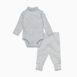 Keep little ones comfortable all day in the Turtleneck Bodysuit & Leggings Set. Both are crafted in the softest organic cotton and bamboo from viscose. The fabric is breathable with a little stretch for a comfortable fit. The bodysuit features popper fastening on the back to make changing babies and toddlers simpler.