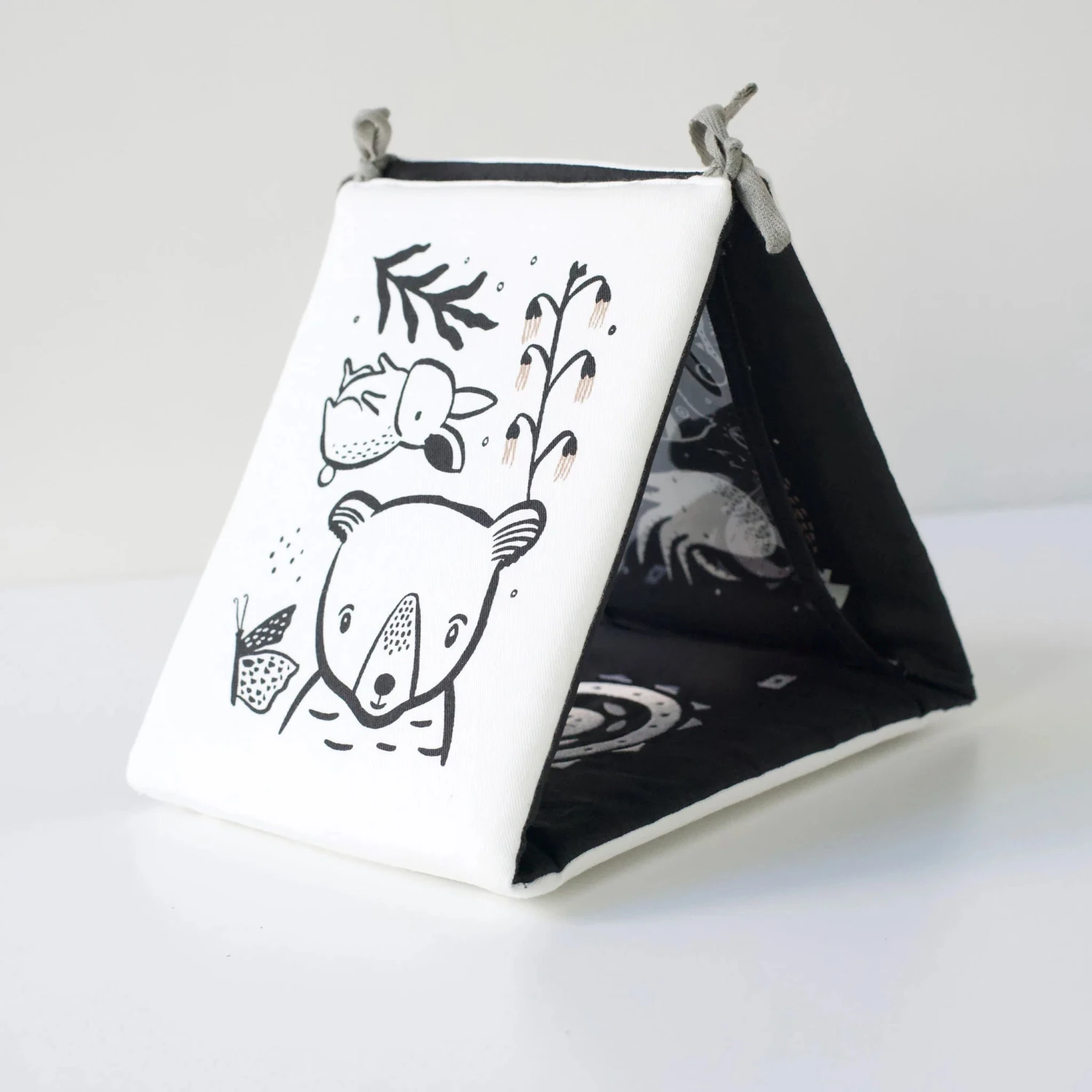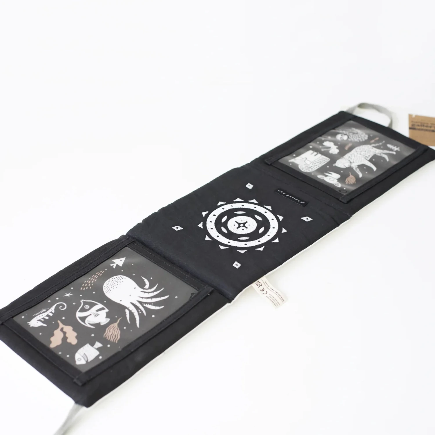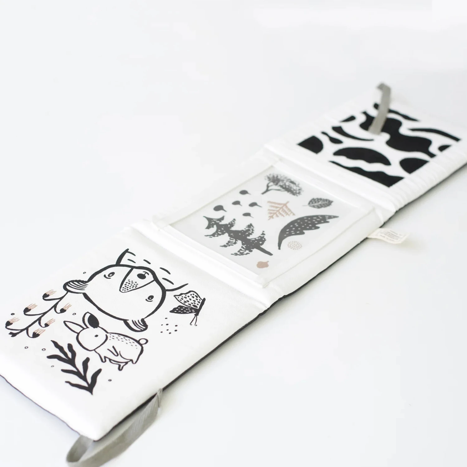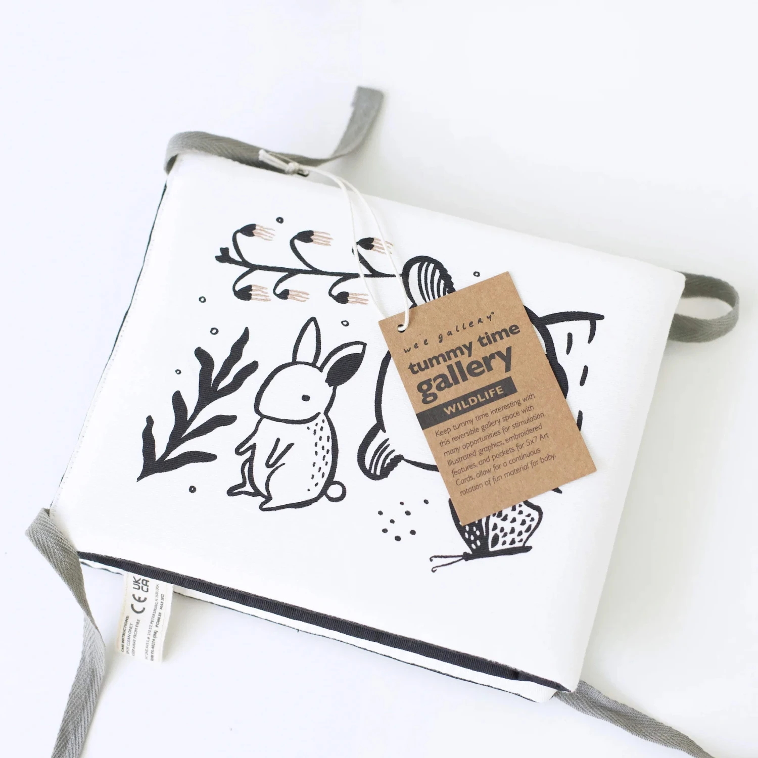 The Wee Gallery Tummy Time Gallery is designed to help babies engage and develop their senses and fine motor skills. Made from organic cotton, this soft book can be laid flat or tie together to form a 3D triangle so little ones can enjoy tummy time play on their own, or look at it whilst laying down, pushing up or seated. The gallery is filled with high-contrast shapes and patterns to develop vision and stimulate curiosity.