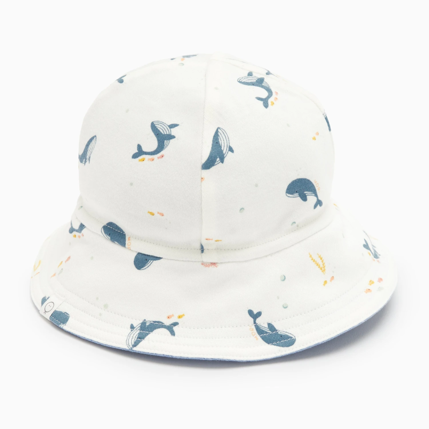 Keep the sun off their face with our reversible hat. It’s made from breathable fabrics and features a fun whale print.
